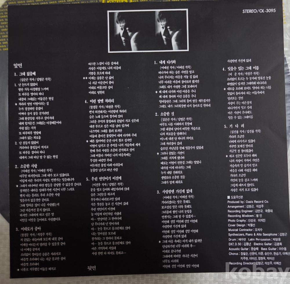 | 자켓상태 | EX : 약간의 마모, 모서리 찢김 존재 | 음반상태 | NM : 개봉했으나 미사용급, 스크래치 없음 | 발매정보 | 초반 | 가사지여부 | 유 |