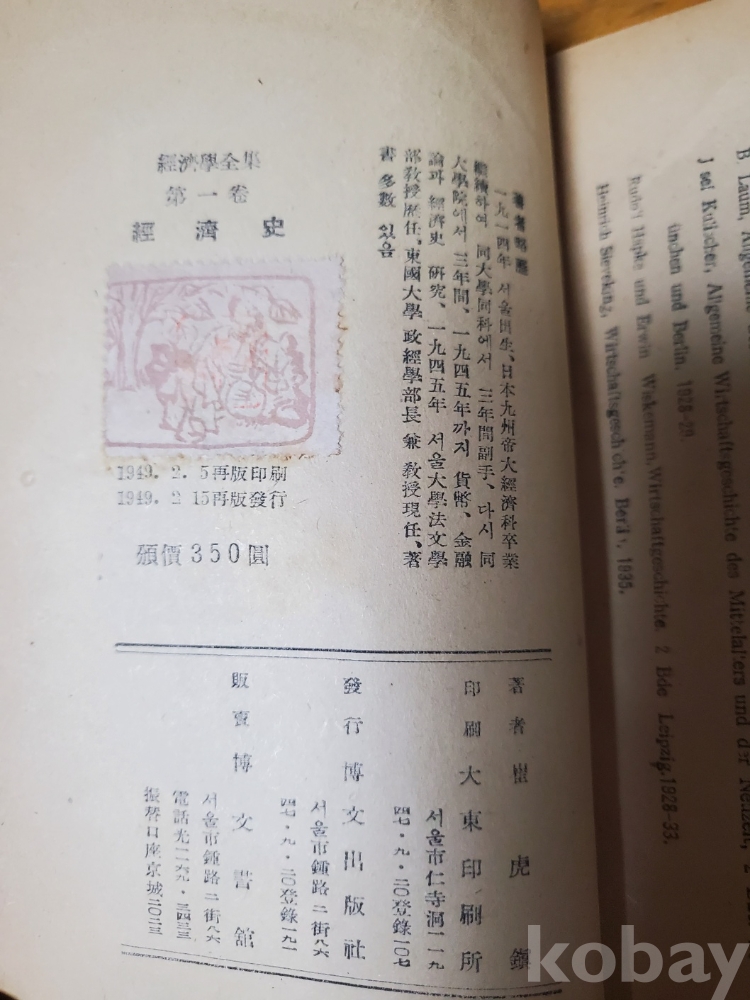 1. 경제사, 최호진, 박문출판사, 1949년, 192쪽, 상태 상, 사진 참조