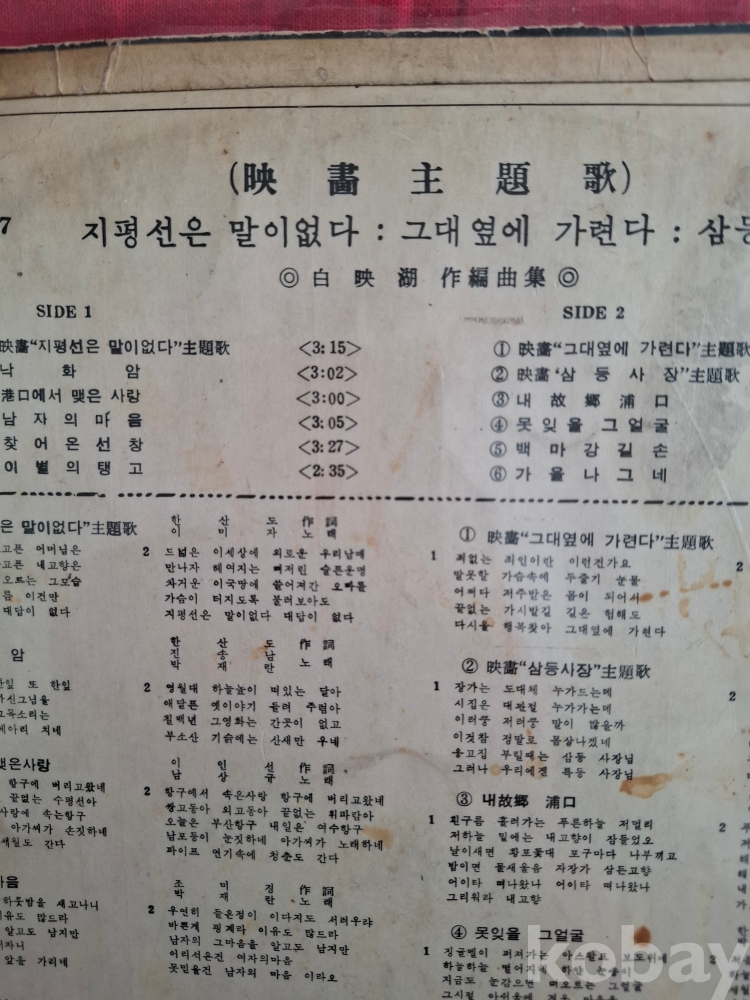LP---영화 주제가 그대옆에 가련다,지평선은 말이 없다,김지미 이별의 탱고,백마강 길손등 (음질 좋습니다)