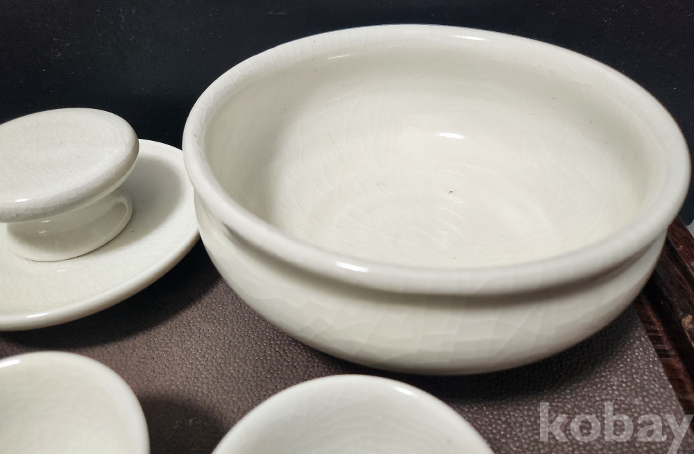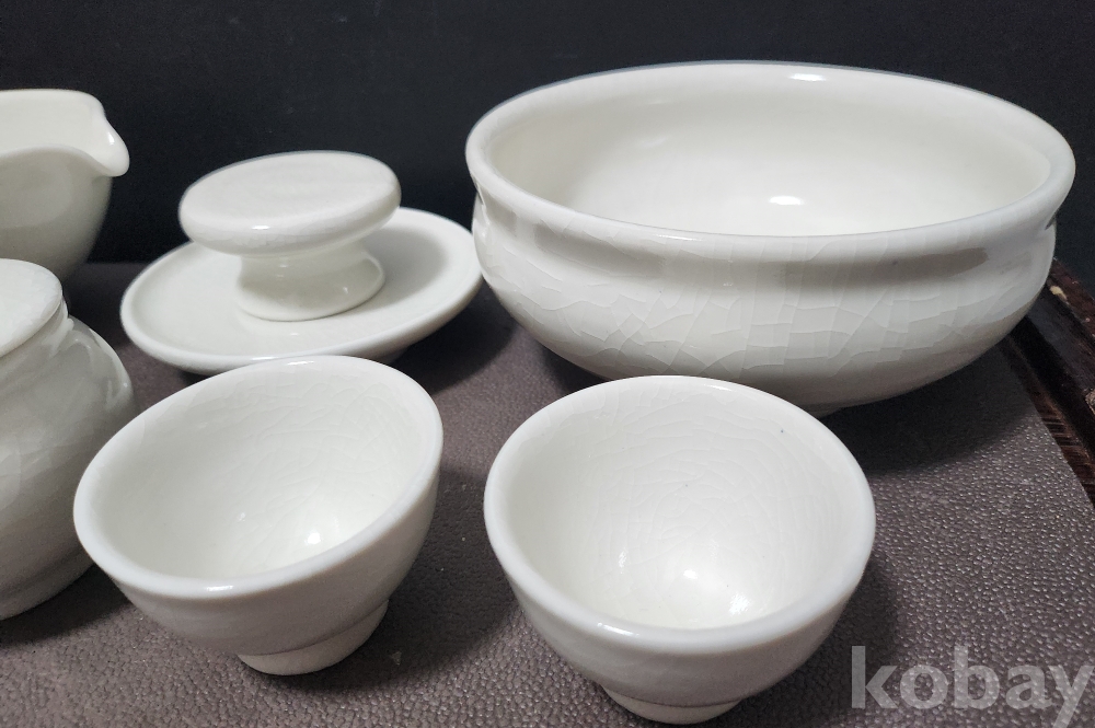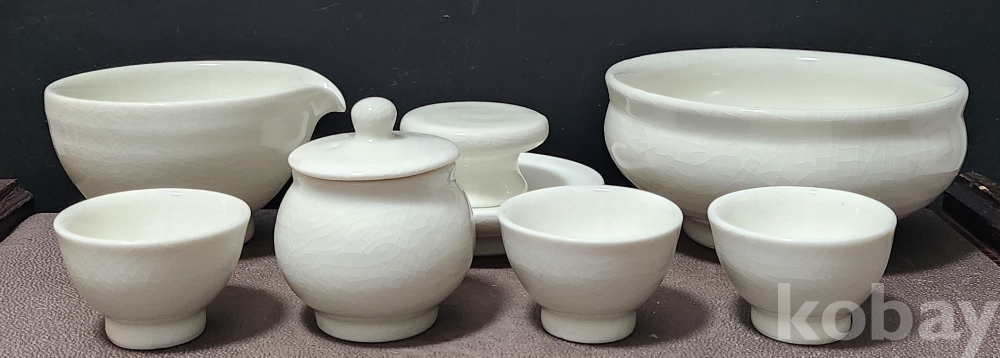백자다기[白磁茶器] 차호[茶壺] 퇴수기[退水器] 숙우[熟盂] < 도예가 수결 作 >