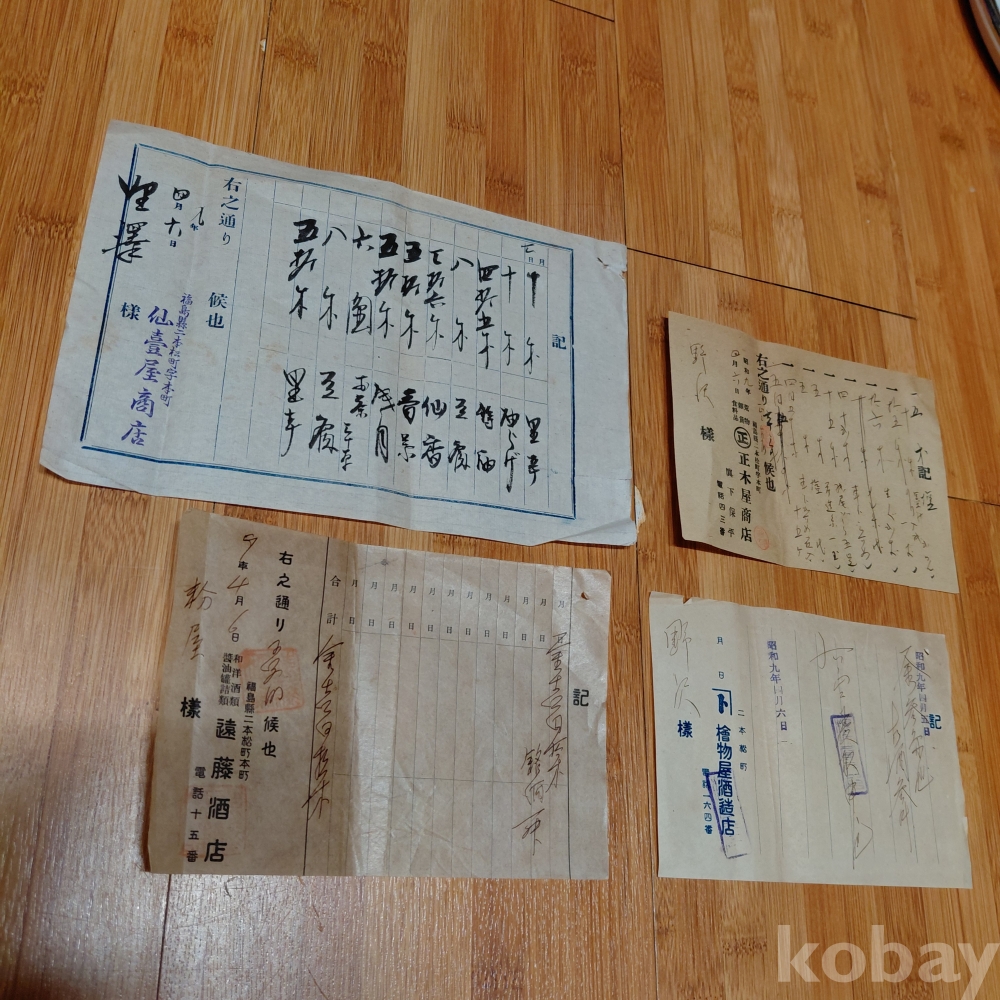소화9년서기1934년 일제강점기 시대 영수자료 네점일괄 올려드립니다