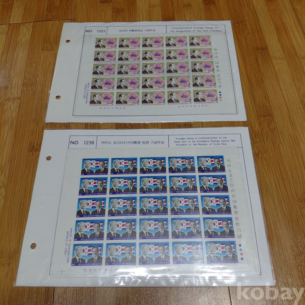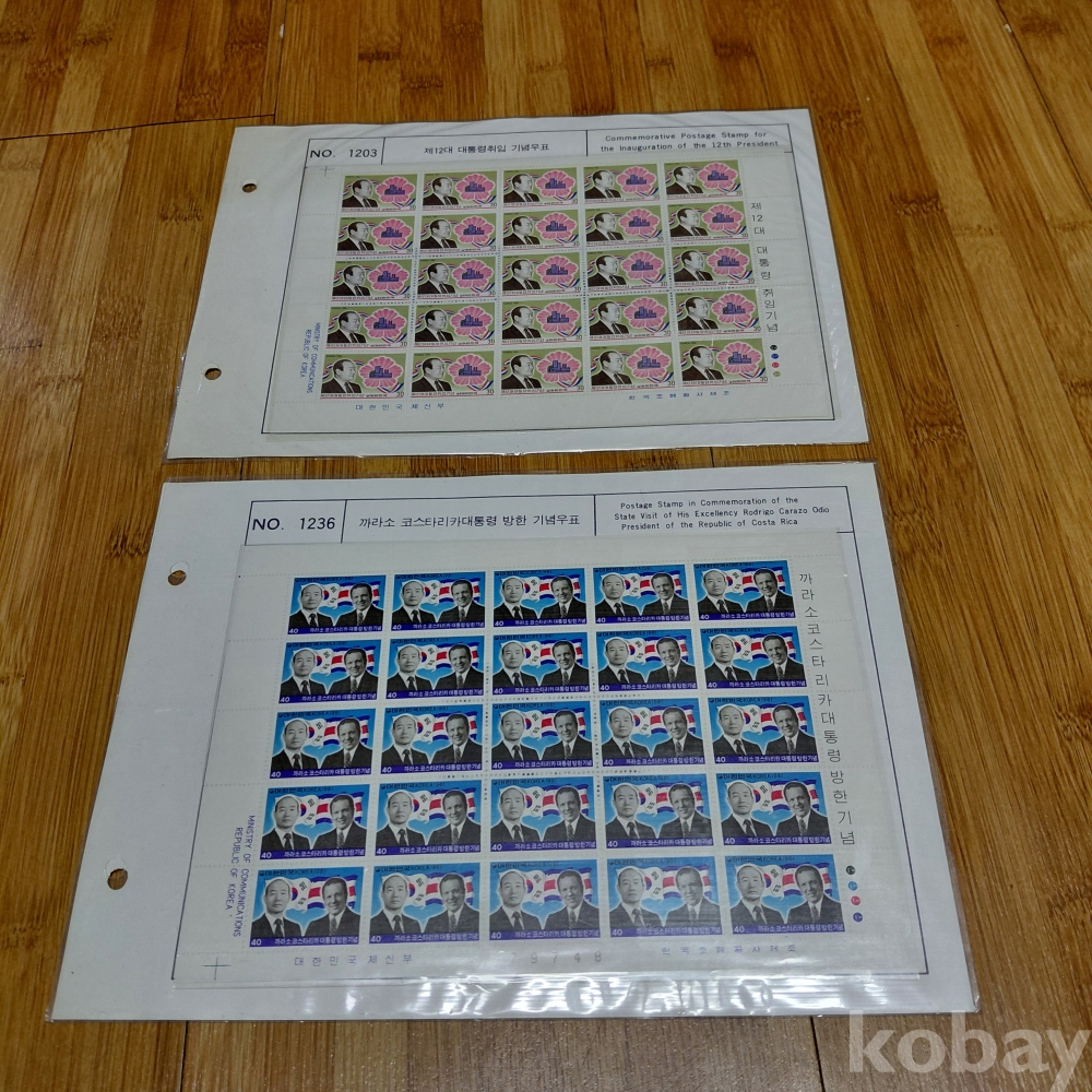 제12대 대통령 취임 기념우표 ㆍ코스타리카 대통령 방한기념 우표 (뒤장 초일봉피 포함 전지두장)올려드립니다
