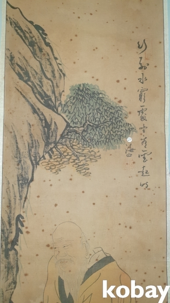 유명화가 해산 (海山) 수결과 낙관이 보이는 비단에 채색된 인물화입니다,