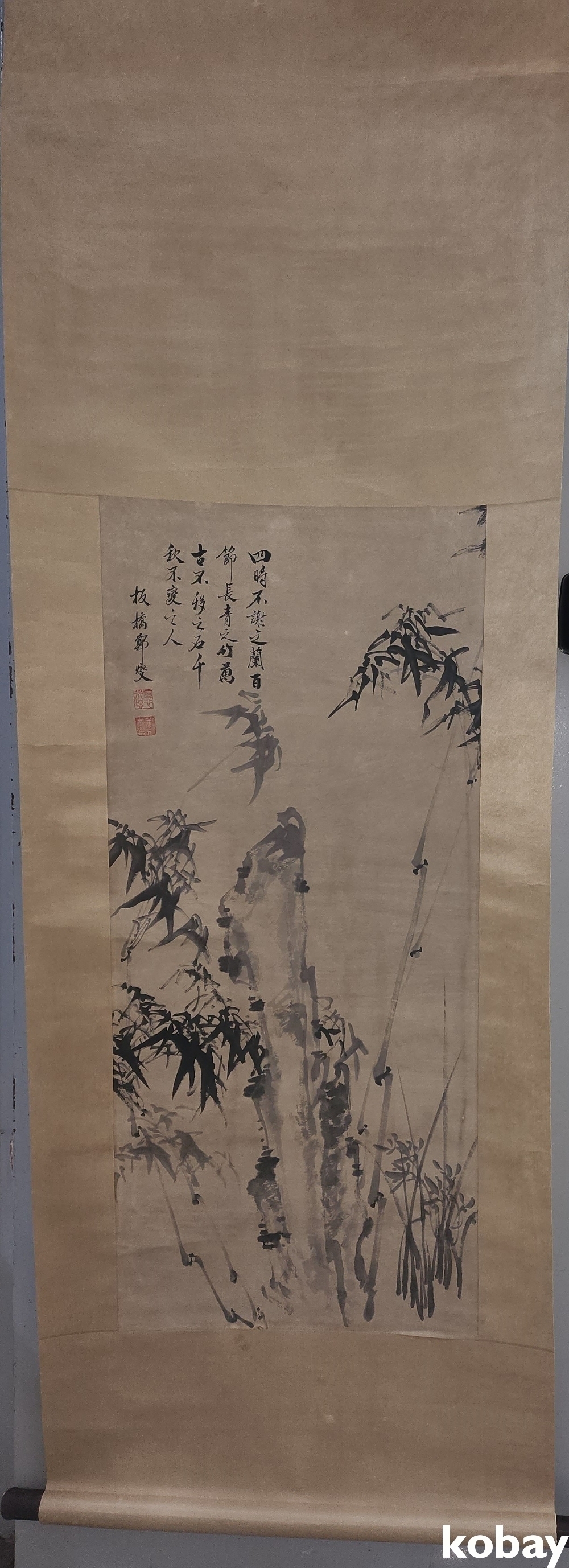 중국 유명화가 정판교 종이에 수묵 족자입니다.
