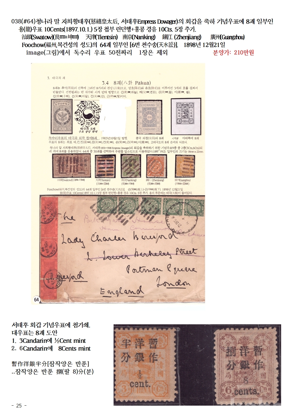 038(#64)청나라 말 자희황태후(慈禧皇太后, 서태후Empress Dowager)의 회갑을 축하 기념우표에 8괘 일부인
