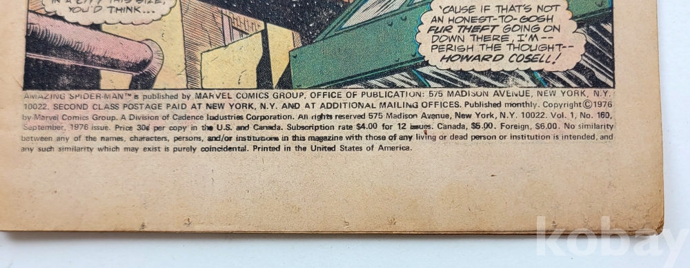 물 품 명 | the Amazing SPIDER-MAN / Vol.1 #160 Sep. 1976 / MARVEL COMICS GROUP / 미국 |