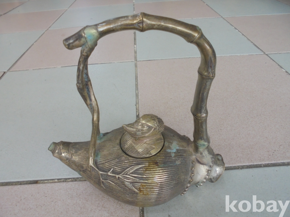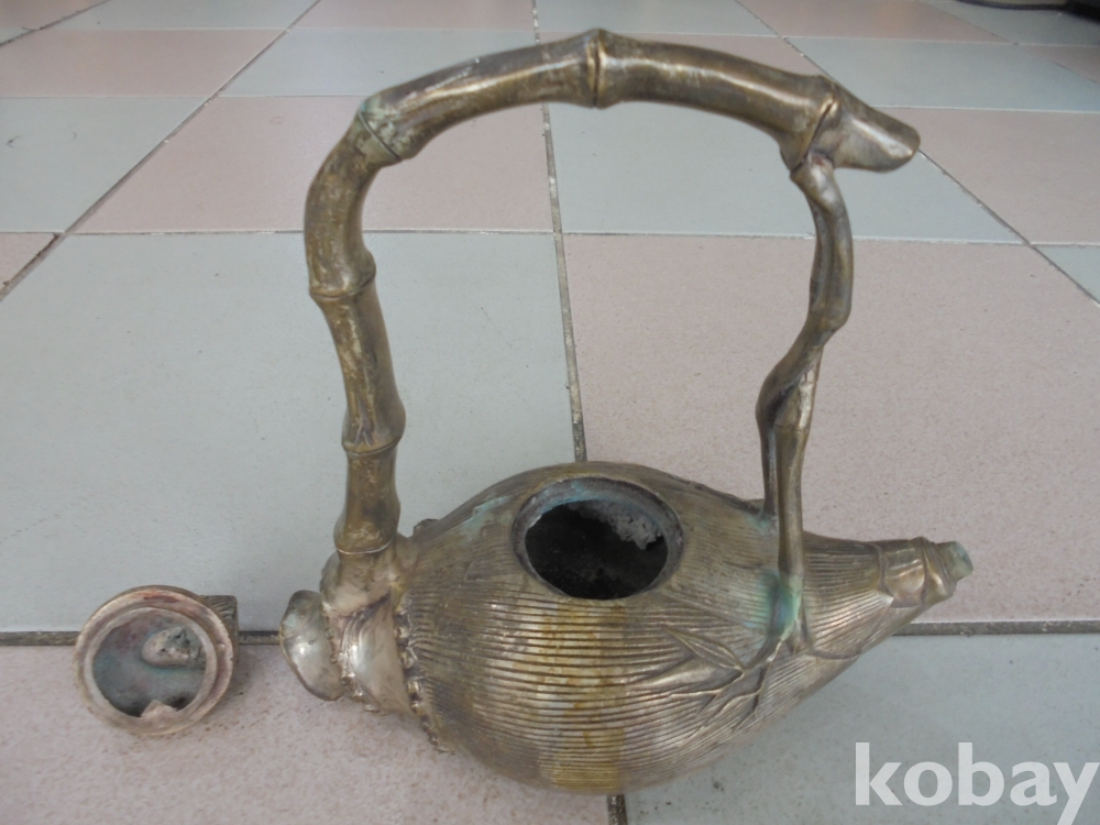 아주예술적으로 처음보는형의 대나무 숙순 몸통에 죽순뚜껑 뿌리 손잡이 아주 멋있는 오래된 죽순형의 백통 주전자