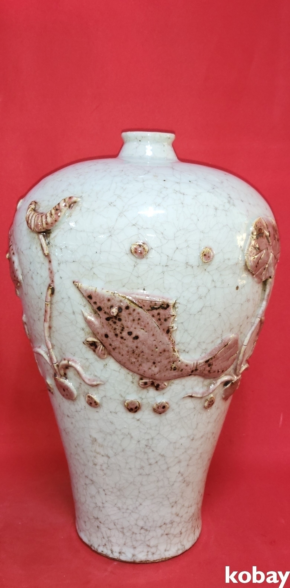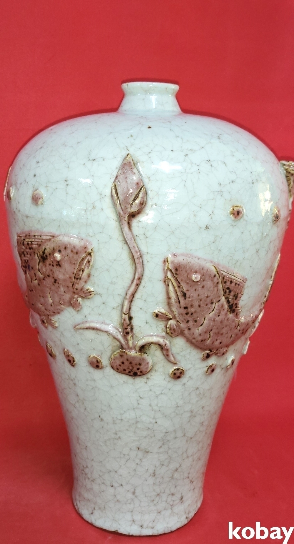 명말 청초로 사료되는 유리홍 어문 매병입니다,