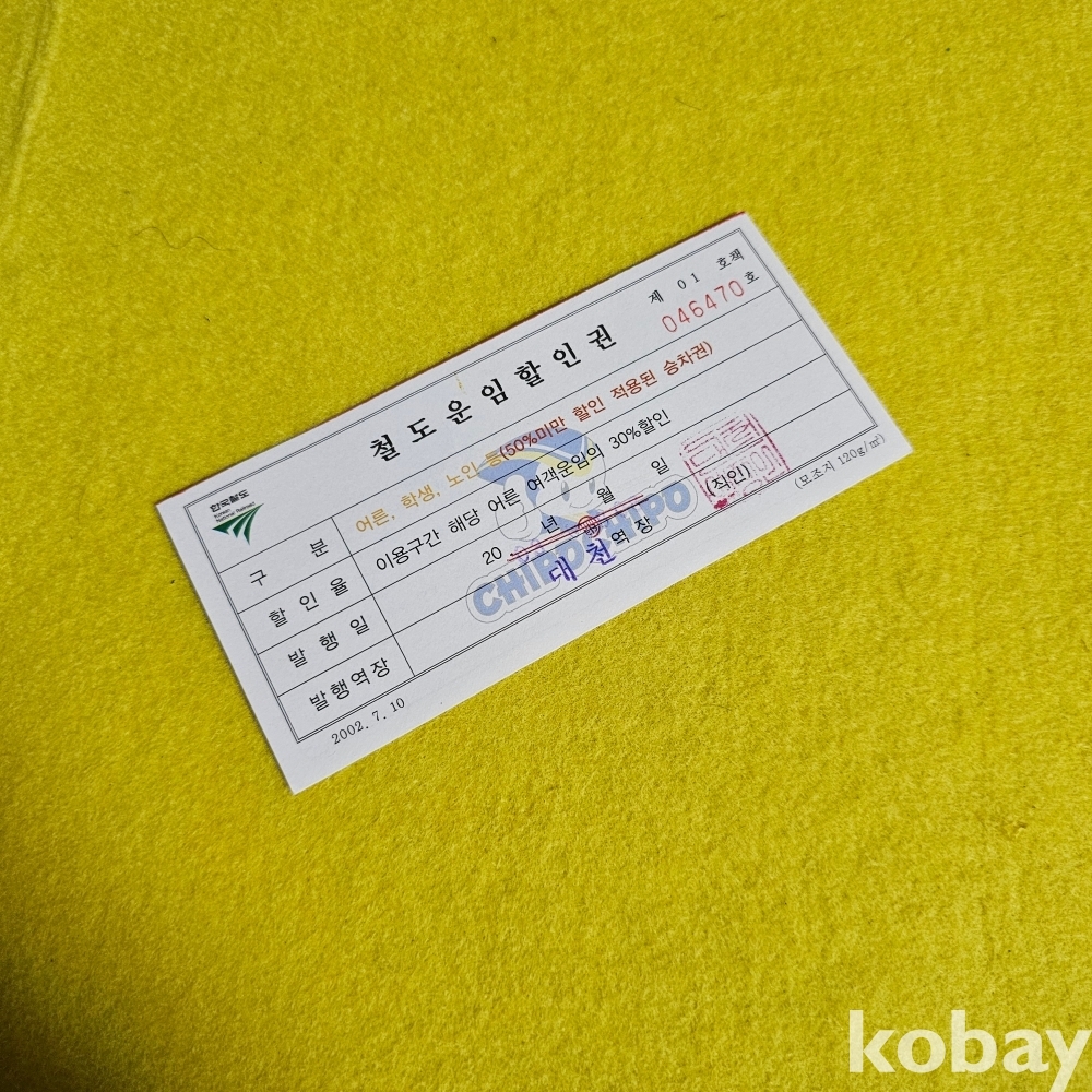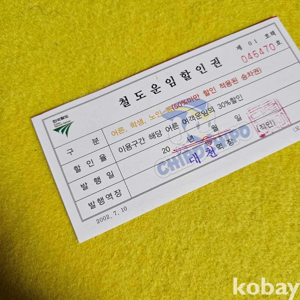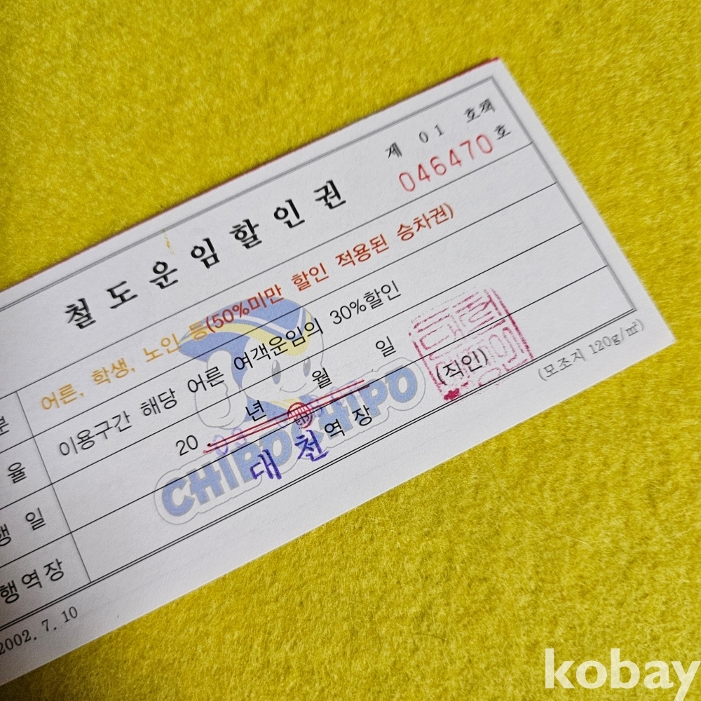 (((철도자료))) 2003년 철도운임할인권 (대천역장)(한국철도)