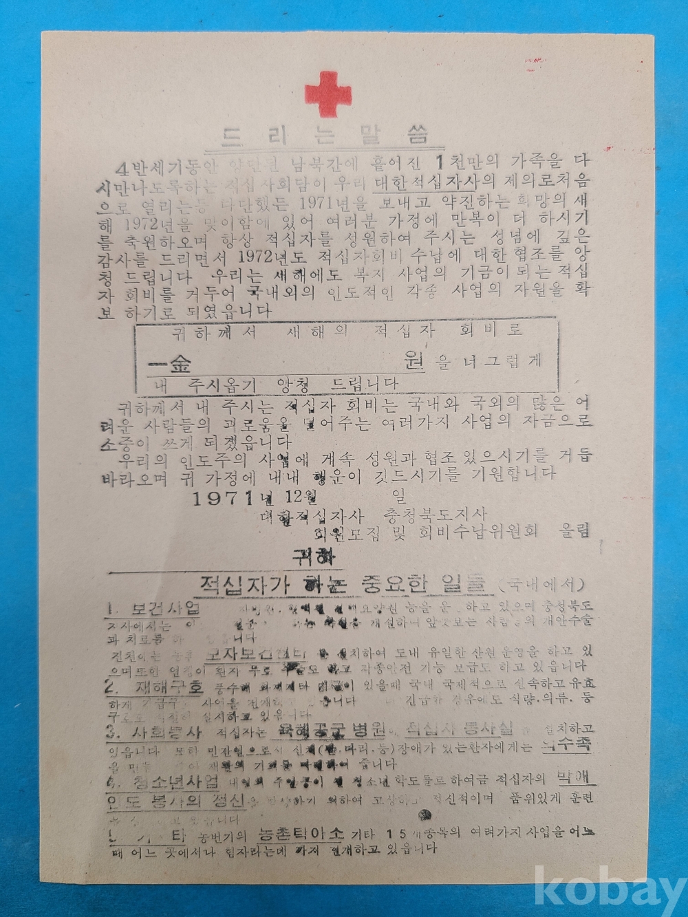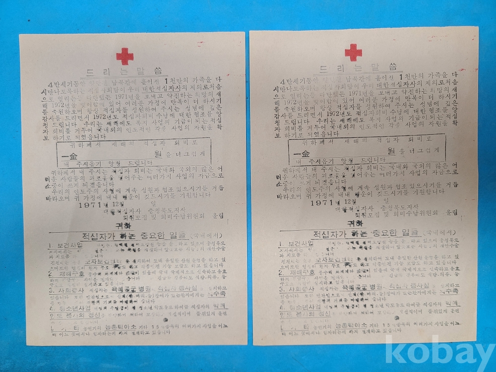 **** 1971년 대한적십자사 충북지사 리플릿 2부 [적십자회비 모금]
