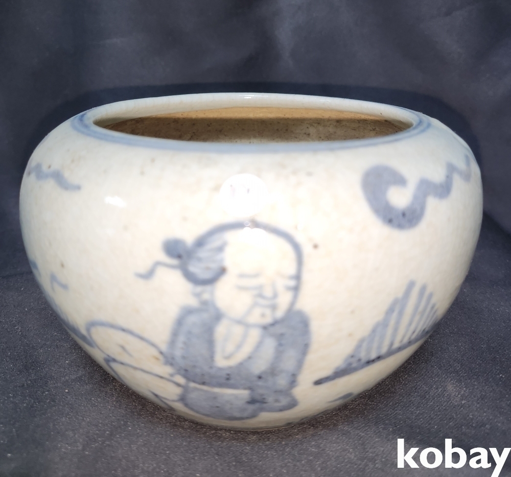 연대좋은 청화백자 인물문 호입니다, 기물 전체에 도안이 가득합니다,