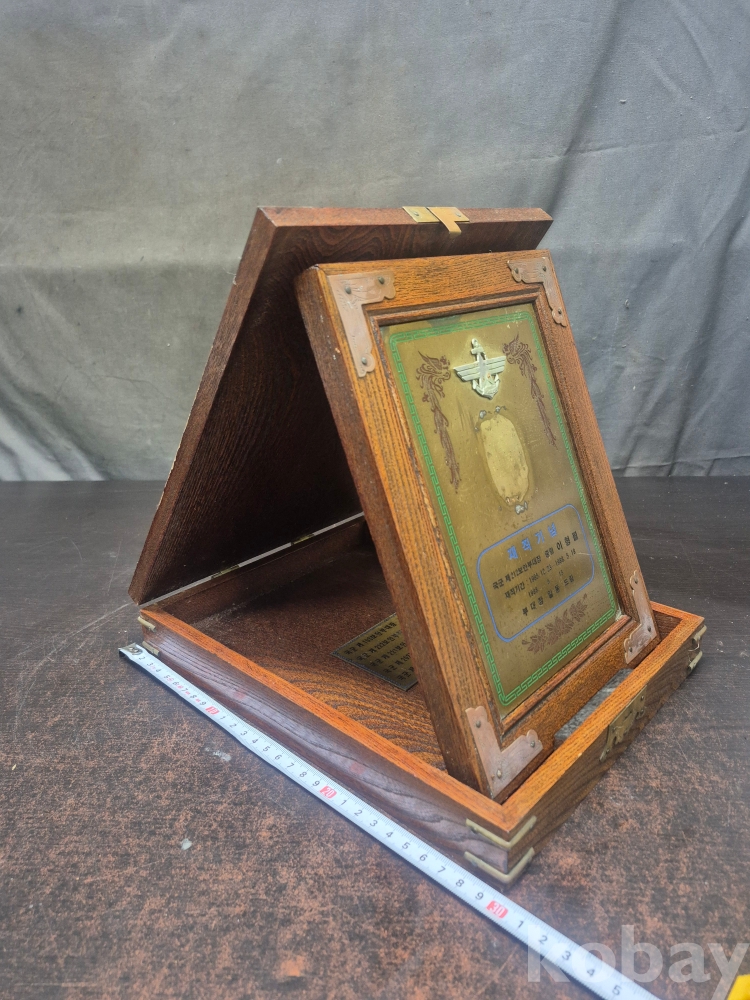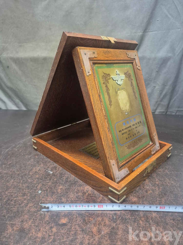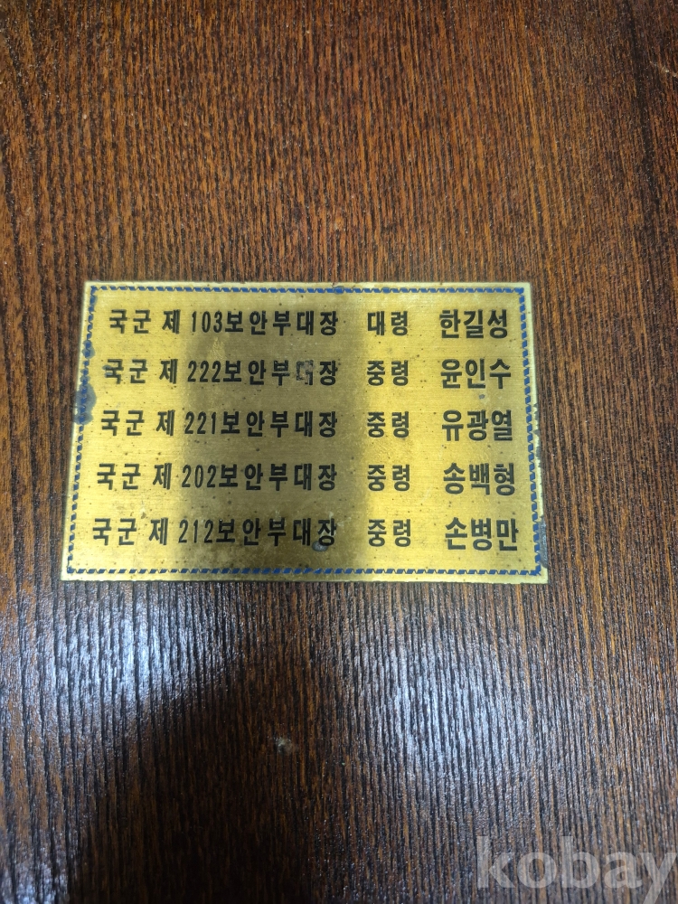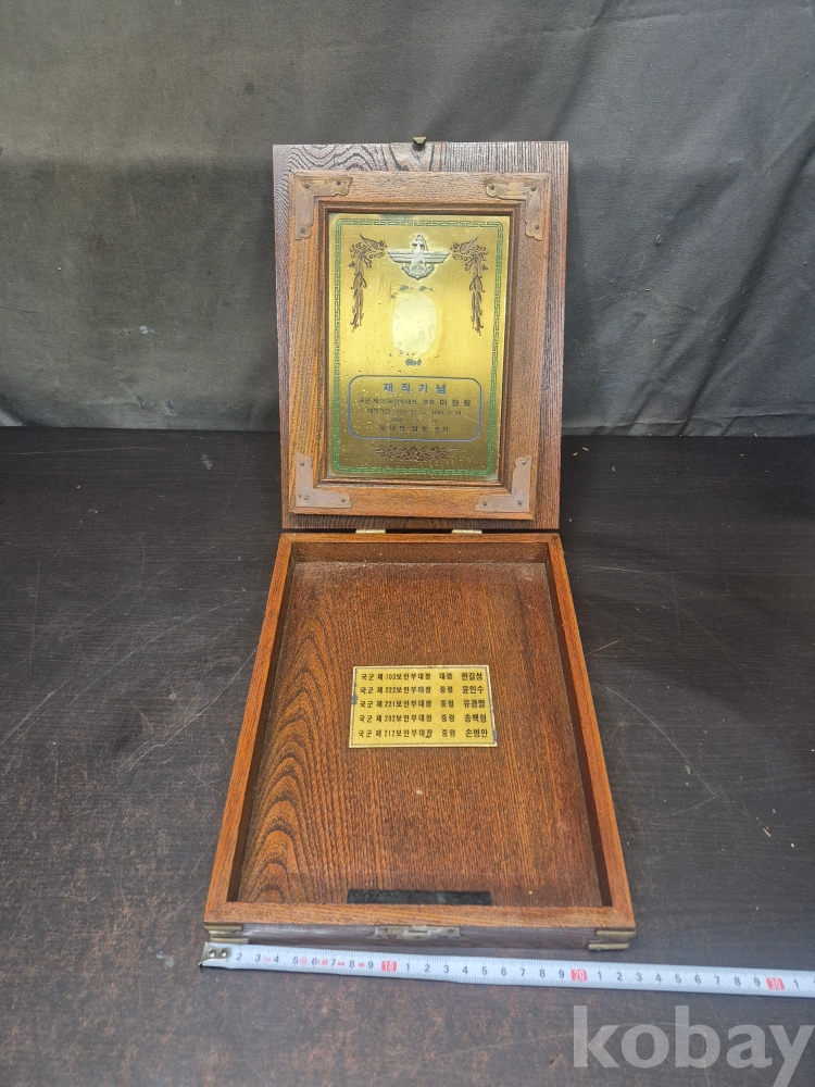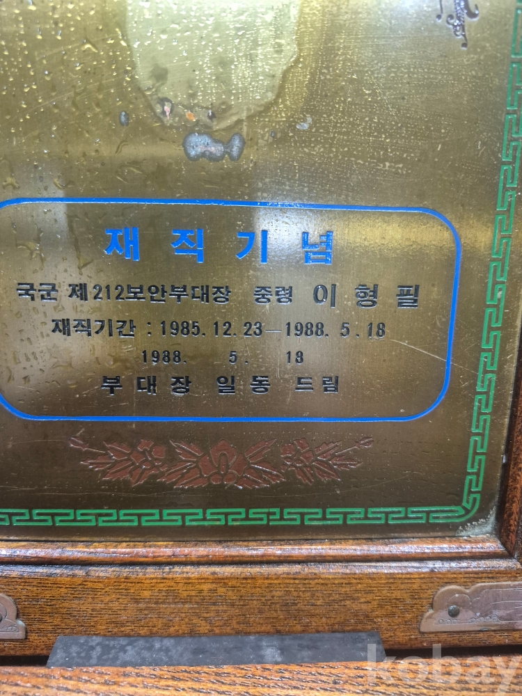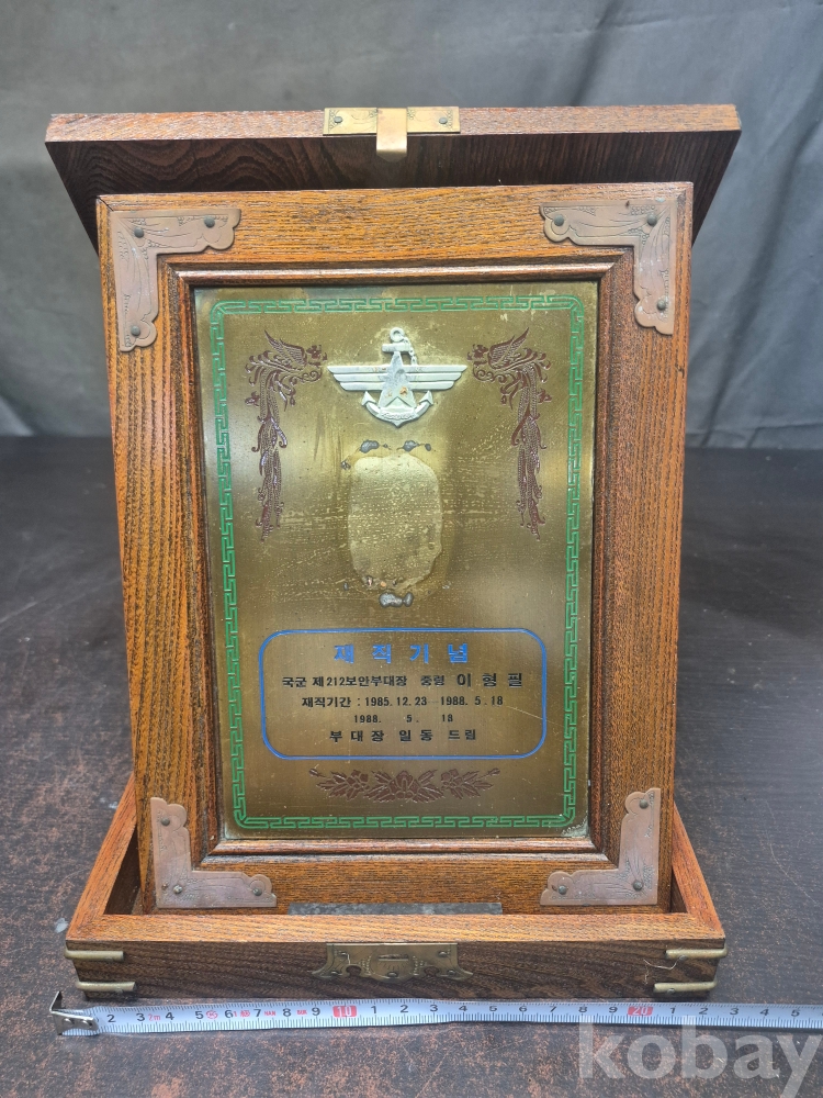 1985년 군자료 국군 제 212 보안부대장 중령 이형필님 재직기념패 원목에 접이식 기념패 부대장일동 22*29*5