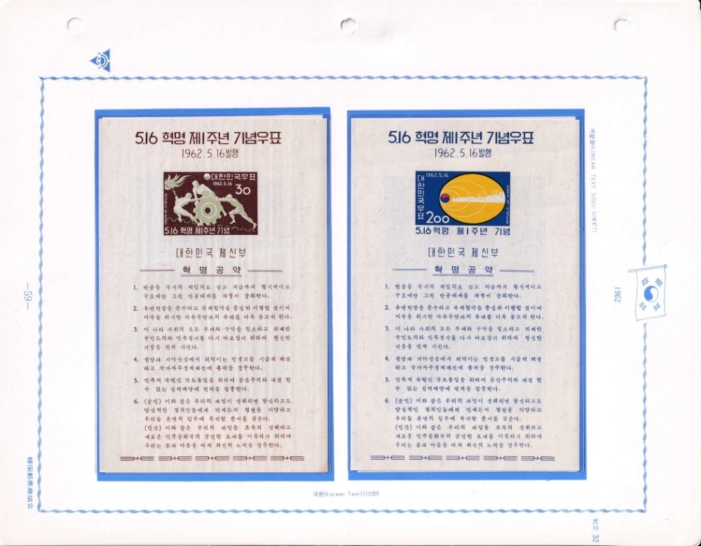 - 한국우표앨범 모음展 - 5.16혁명 제1주년 기념 우표 발전하는 공업시설 국문 시트(1962년)