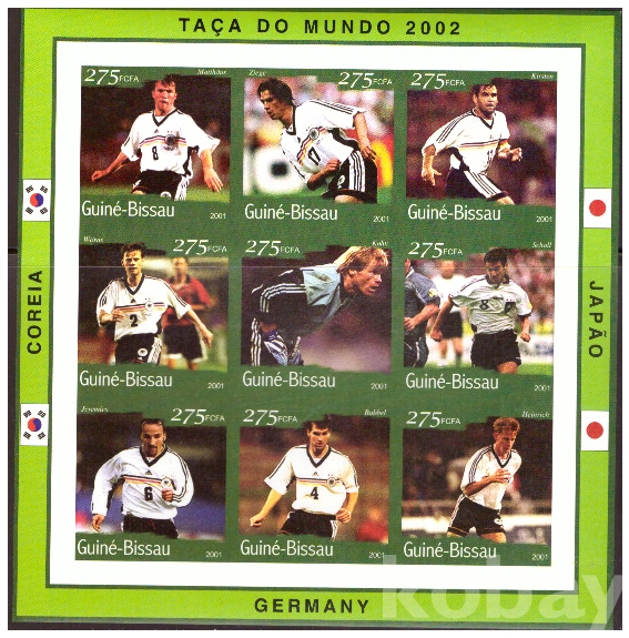 (월드컵) Guinea Bissau (기니비사우) 2002 한.일월드컵축구대회 무공 sheet of 9 (Germany) MNH