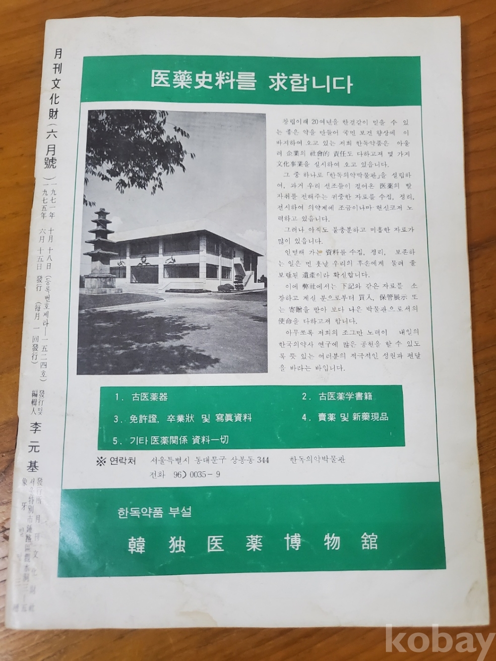 1. 월간문화재 통권 42호, 월간문화재사, 1975년, 50쪽, 상태 상, 사진 참조