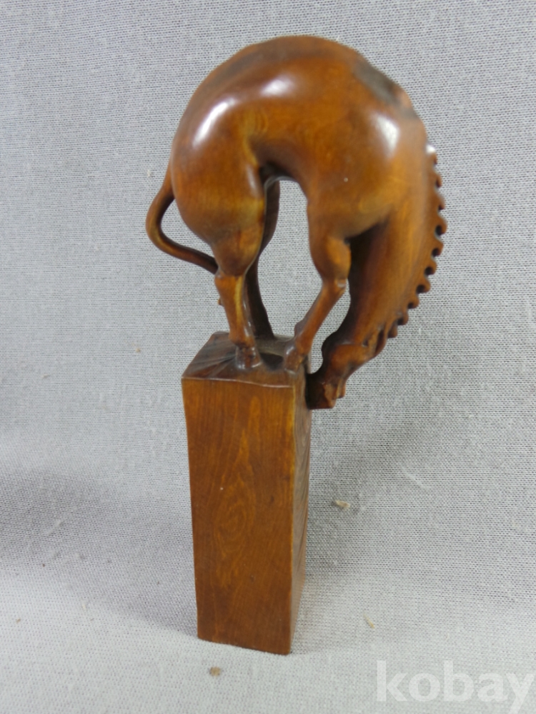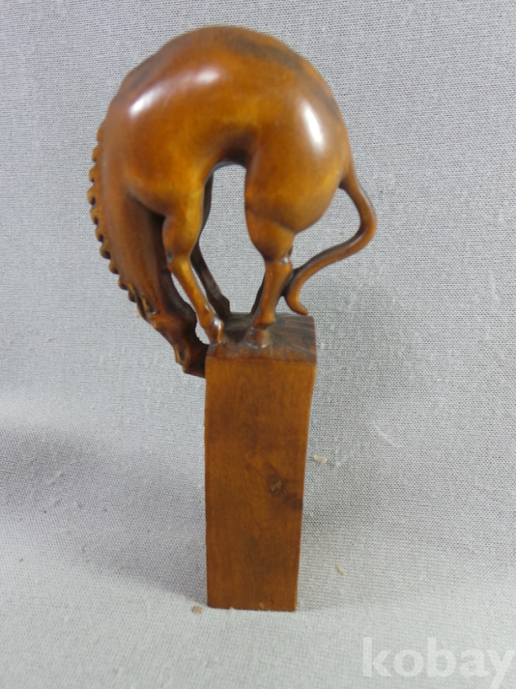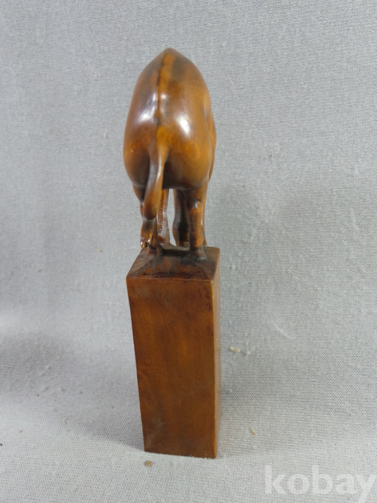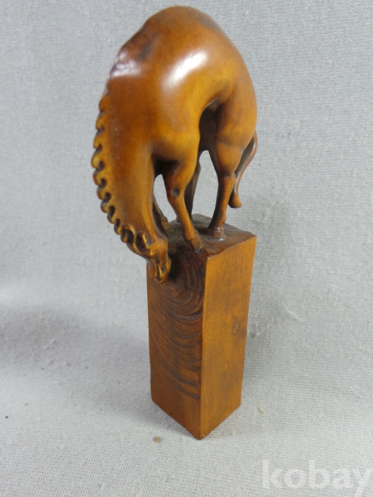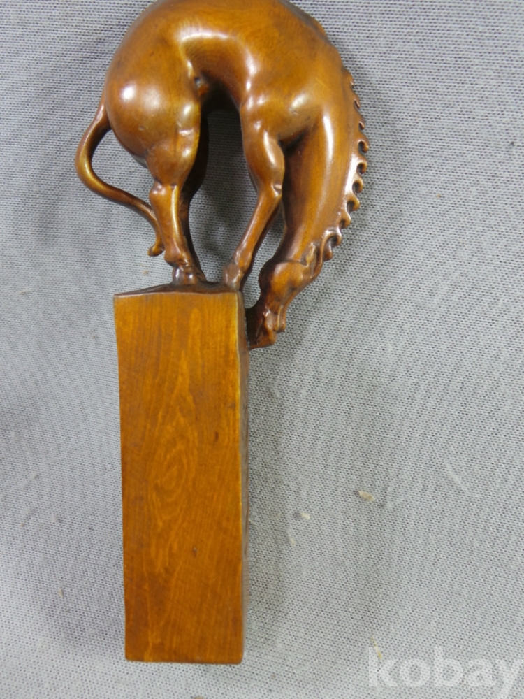 말이 물을 먹는 모습이 조각 되어 있는 귀한 나무 도장 .예술 작품