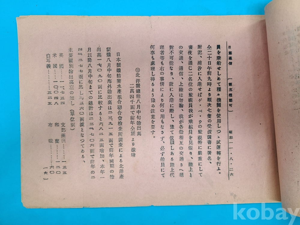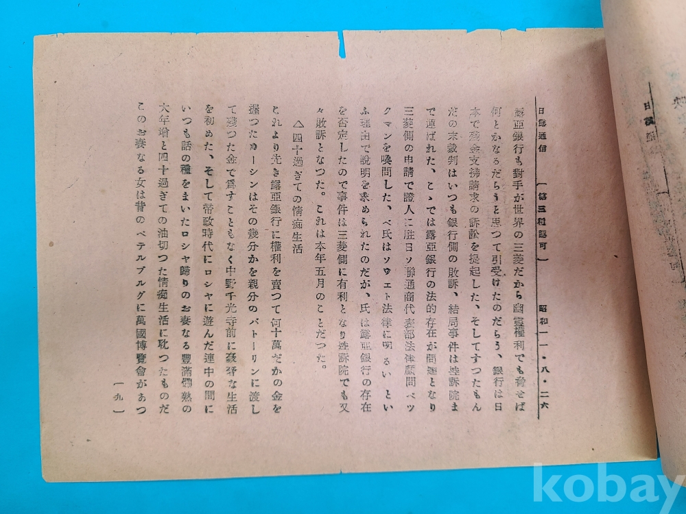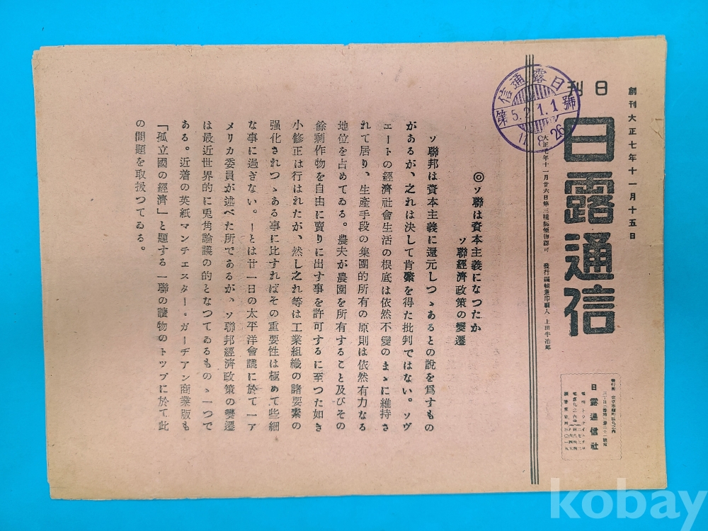 **** 소화11년(1936년) 일본 日露通信社 발행 [日露通信(일로통신)]1*9면