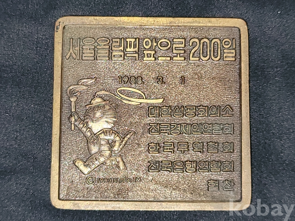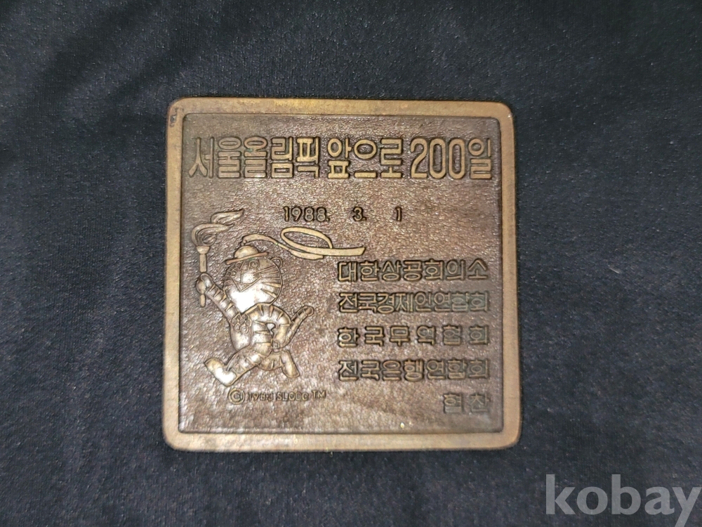 빈티지 1988년 서울올림픽 앞으로 200일 기념 서울올림픽 성화봉성로 달리기대회 메달입니다.