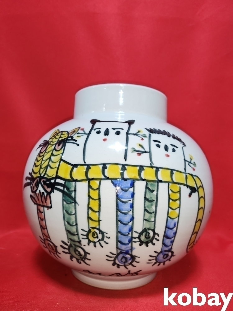 중광 사인 보이는 인물과 동물문양 달항아리입니다,