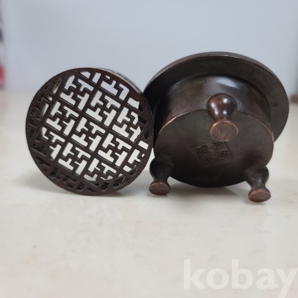 작은 사이즈의 동 향로입니다 미사용으로 상태 양호하고 단순 감상용으로도 좋습니다
