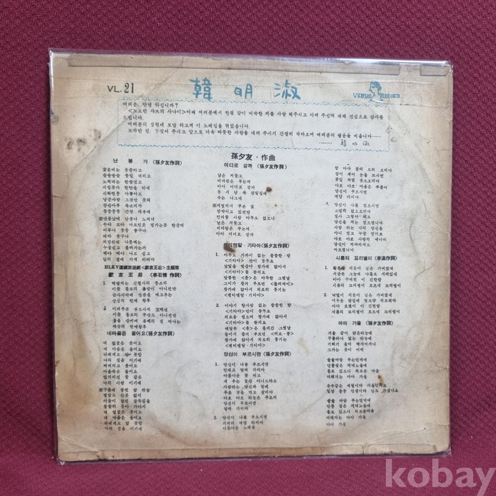| 자켓상태 | EX : 약간의 마모, 모서리 찢김 존재 | 음반상태 | VG : 생활 기스 다수, 가벼운 노이즈 존재 | 발매정보 | 초반 | 가사지여부 | 무 |