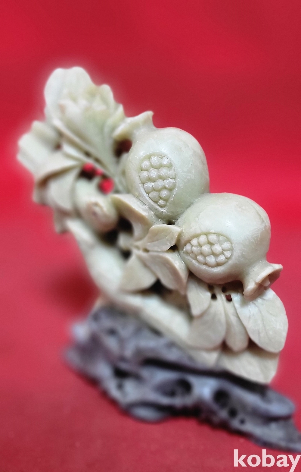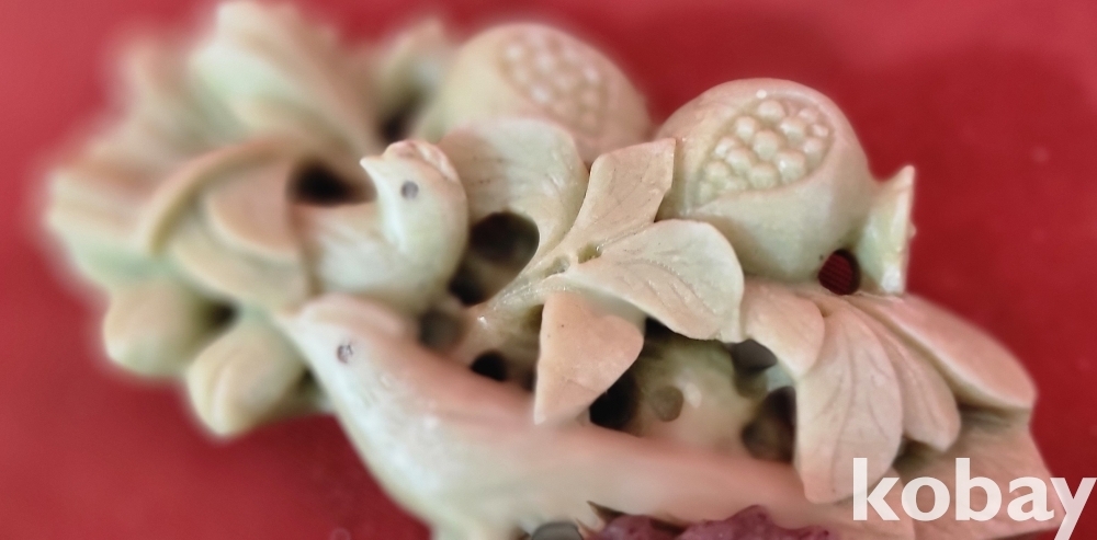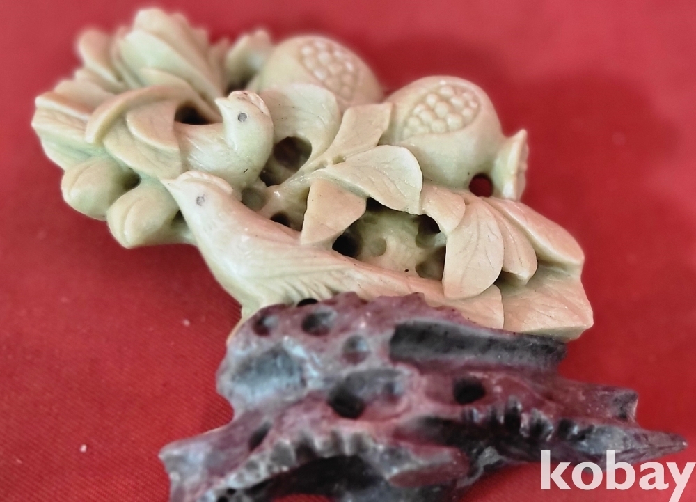 고옥(古玉)으로 완성된 꽃과새(花鳥) 문양 옥조각 장식품입니다,