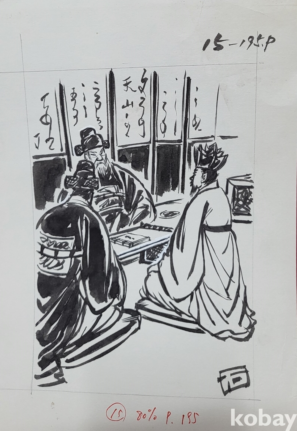 ### 스케치 북에 그린 것으로 어떤 삽화 뒷면에는 1984ㅡ5년 8월 ㅡ10월등의 날인(日印)이 있읍니다,