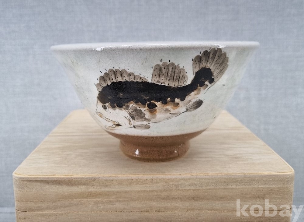 쏘가리의 섬세한 붓터치와 유약의 자연스러운 흐름이 어우러진 이 다완은,