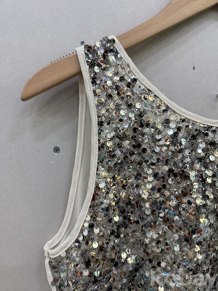 [천원옷장] #26 패셔너블한 여성 실버 스팽글 민소매 파티 블라우스 55