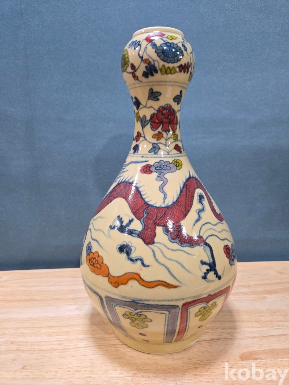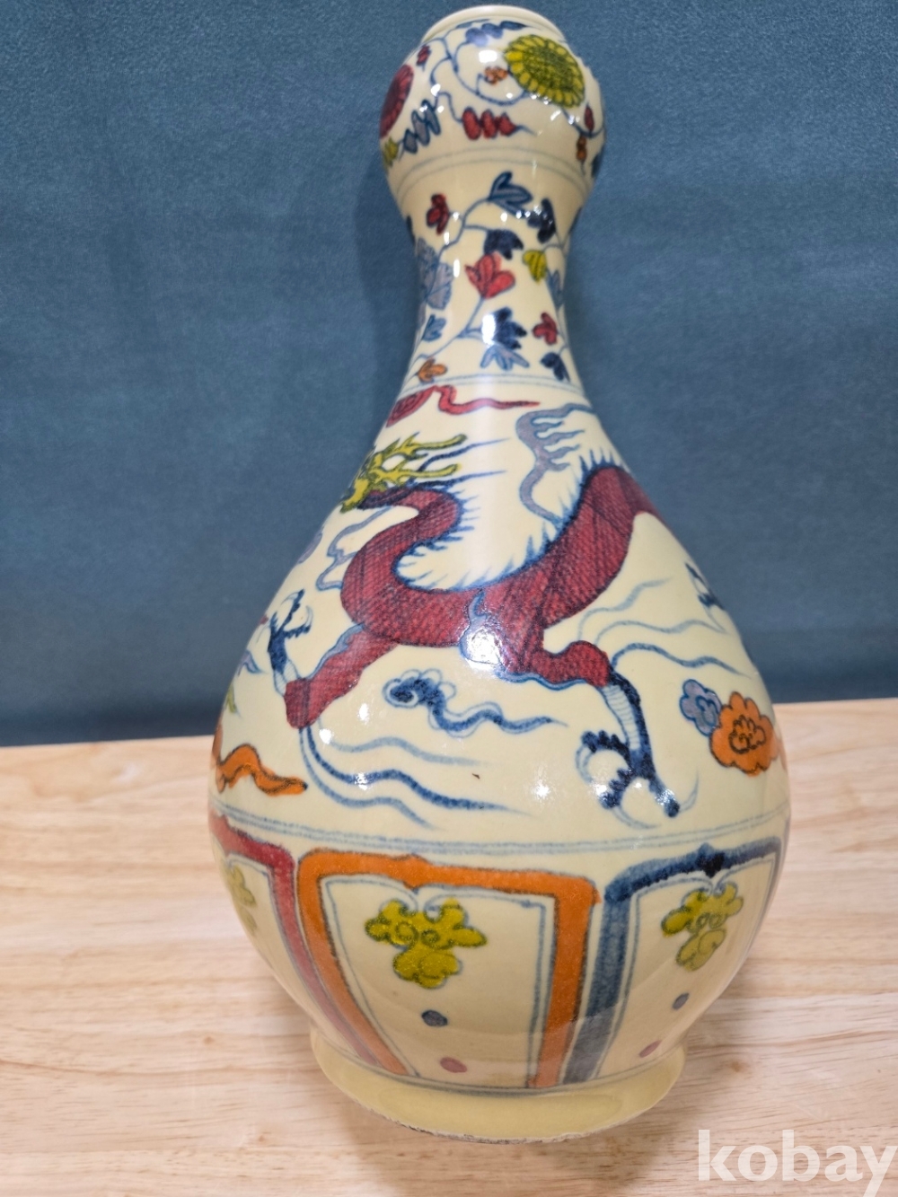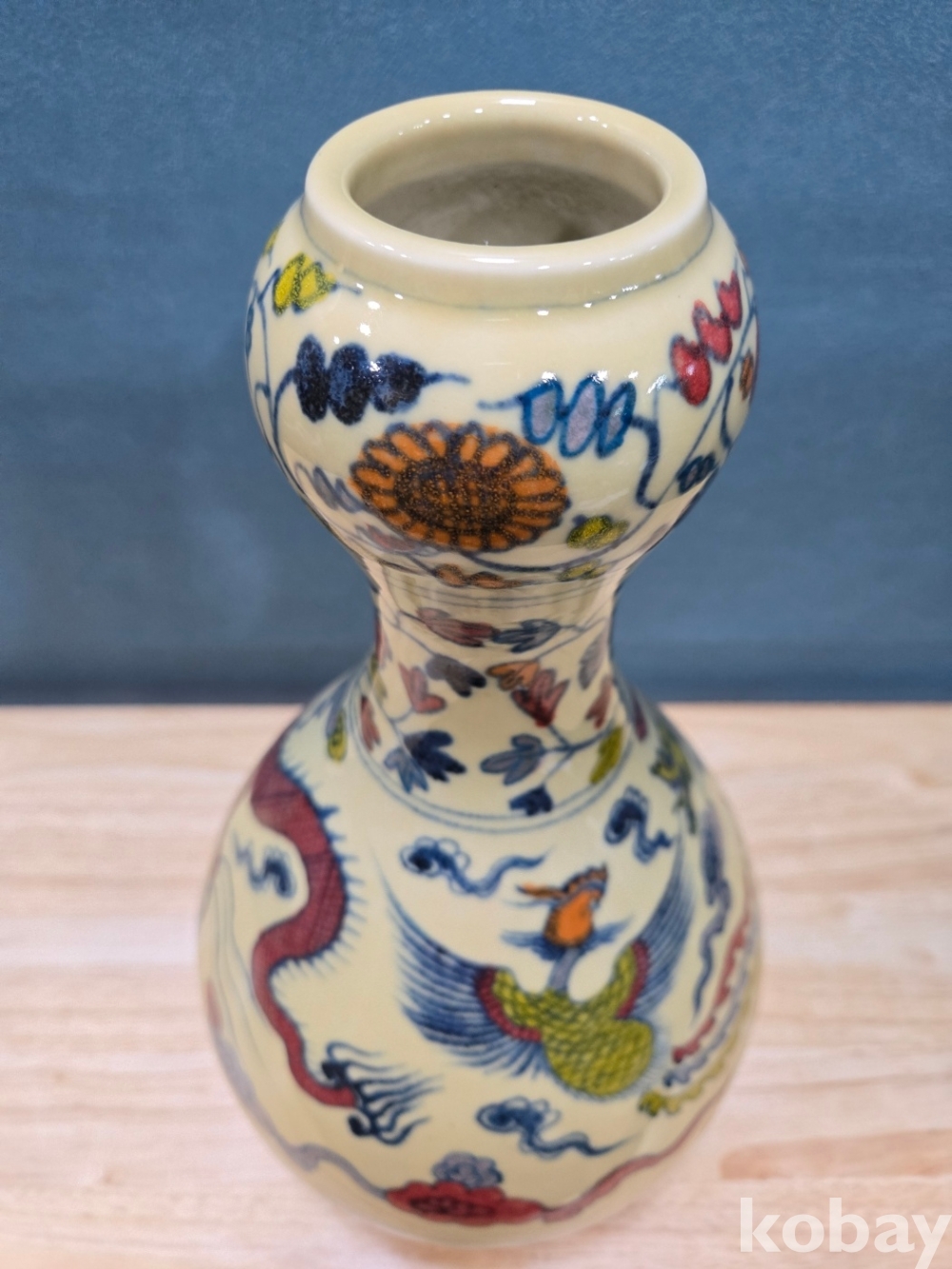 새와 용 문양 호리병 도자기 입니다.