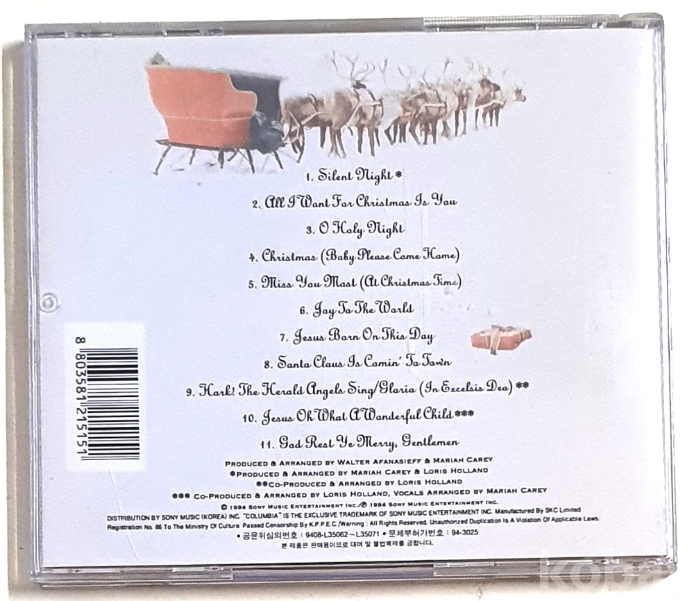 물 품 명 | 머라이어 캐리 4집 정규 앨범 Merry chrismas / All I Want for Christmas Is You / 1994년 |