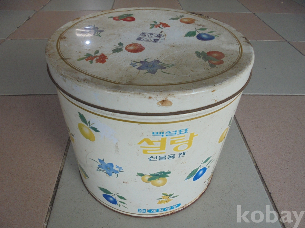 옛날 제일제당이 미풍과 설탕등을 만들어 경쟁업체와 대결한 추억의 오래된 제일제당이 만든 백설표 양철 큰설탕통