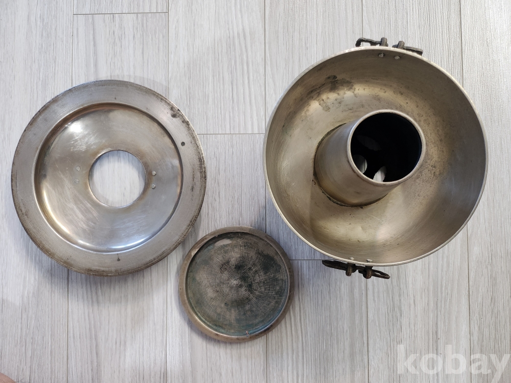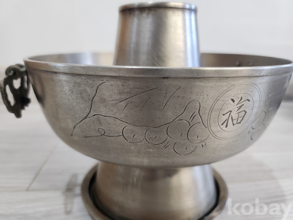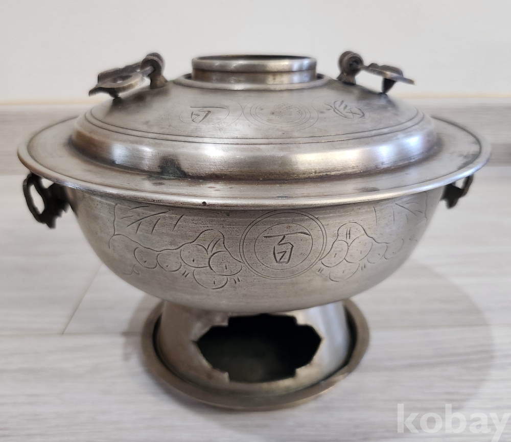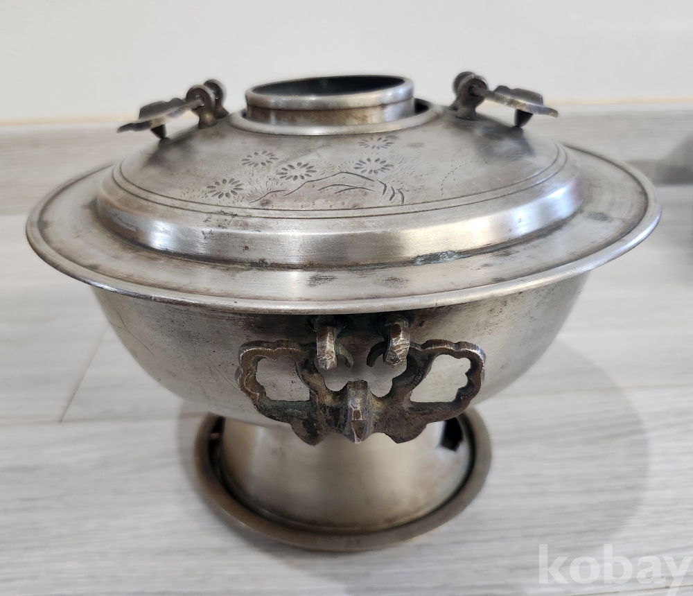 선조들이 사용한 백동으로 만들어진 신선로 입니다 투껑에 태극. 괴석에 국화꽃문양이 수작업으로 새겨져 있습니다 사진 상세히 올리니 참조바랍니다