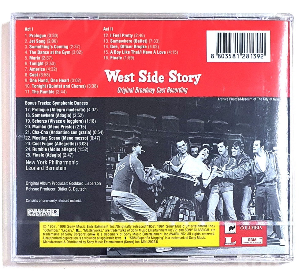 물 품 명 | 브로드웨이 뮤지컬 '웨스트 사이드 스토리' 앨범 / 래너드 번스타인 작곡 , 스티븐 손드하임 작사 / 2002년 |