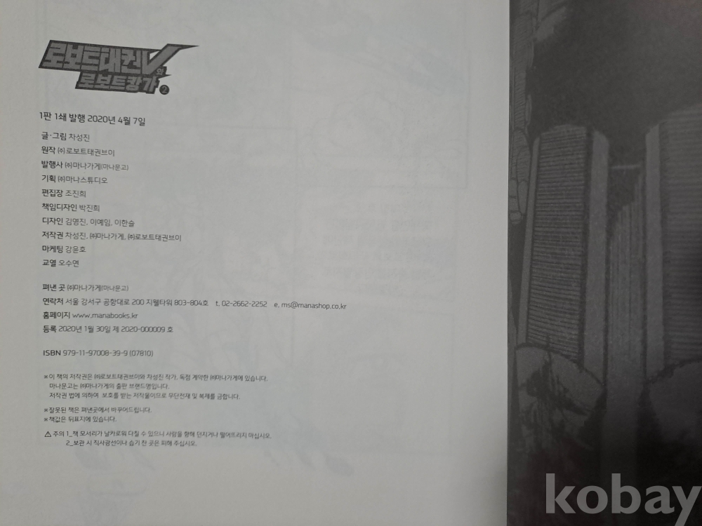 * 마나문고에서 와디즈펀딩으로 진행된 태권브이 만화책 초판본입니다. (사이즈 : 188*257mm의 판형)