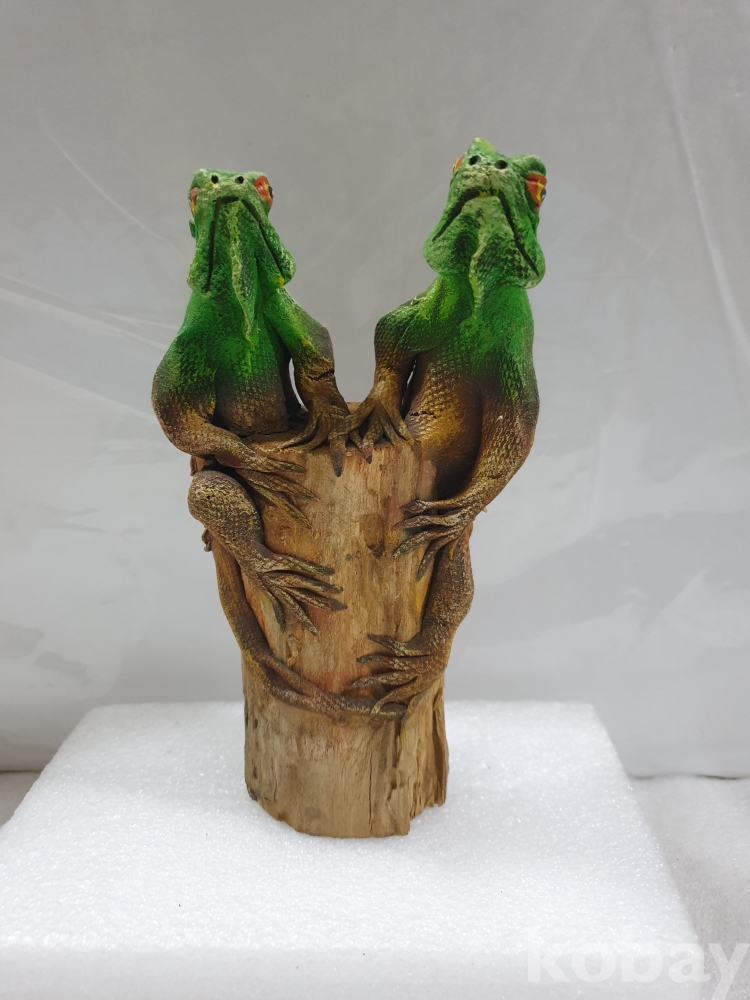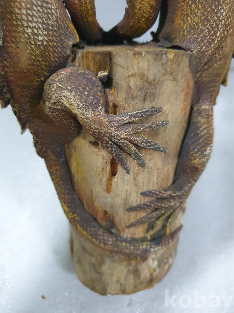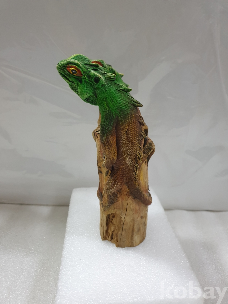 {천원경매}10-2206 도마뱀 나무 장식(17cm, 나무가루 떨어짐0