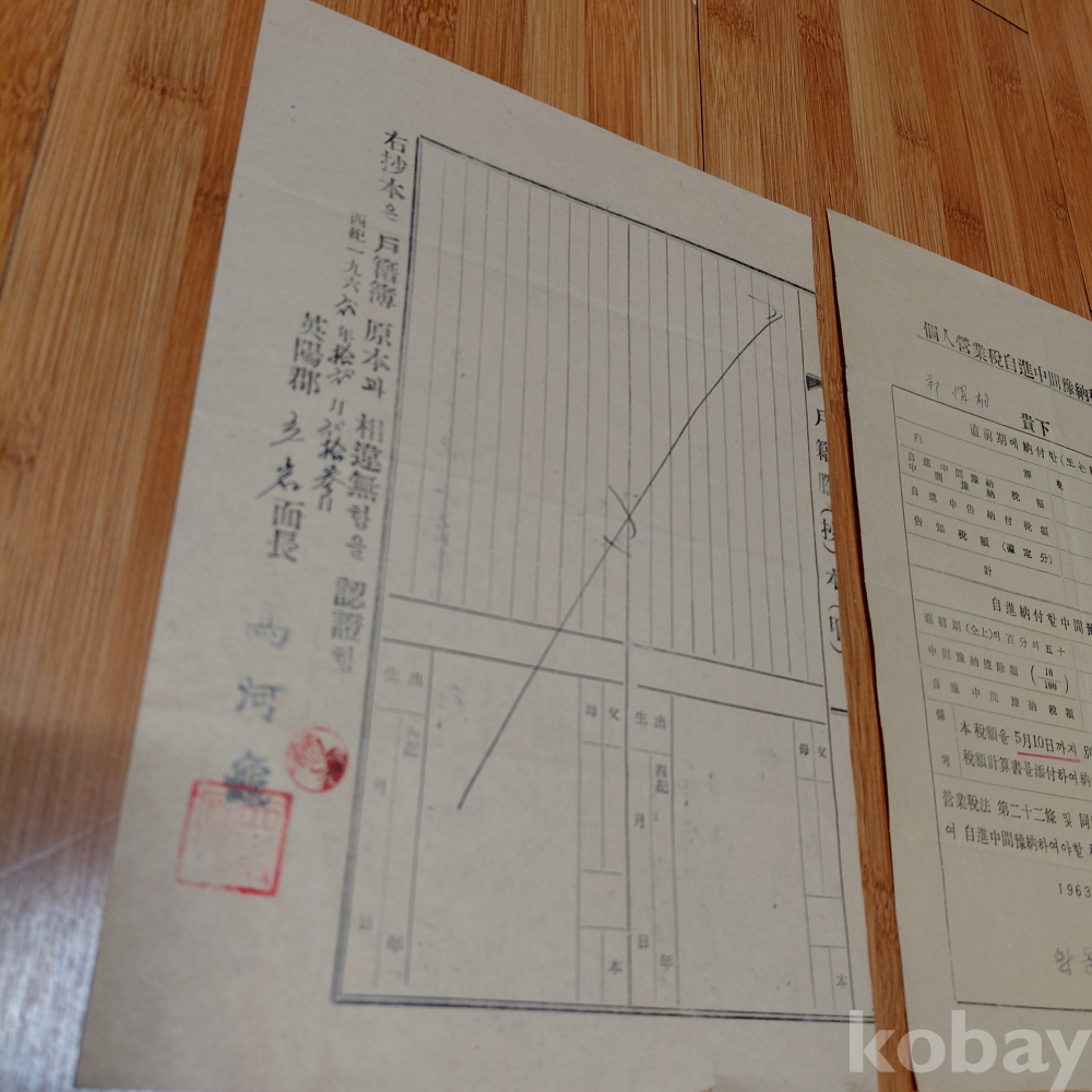 1962년경북 영양 호적자료 ㆍ1963년안동세무자료 두점일괄