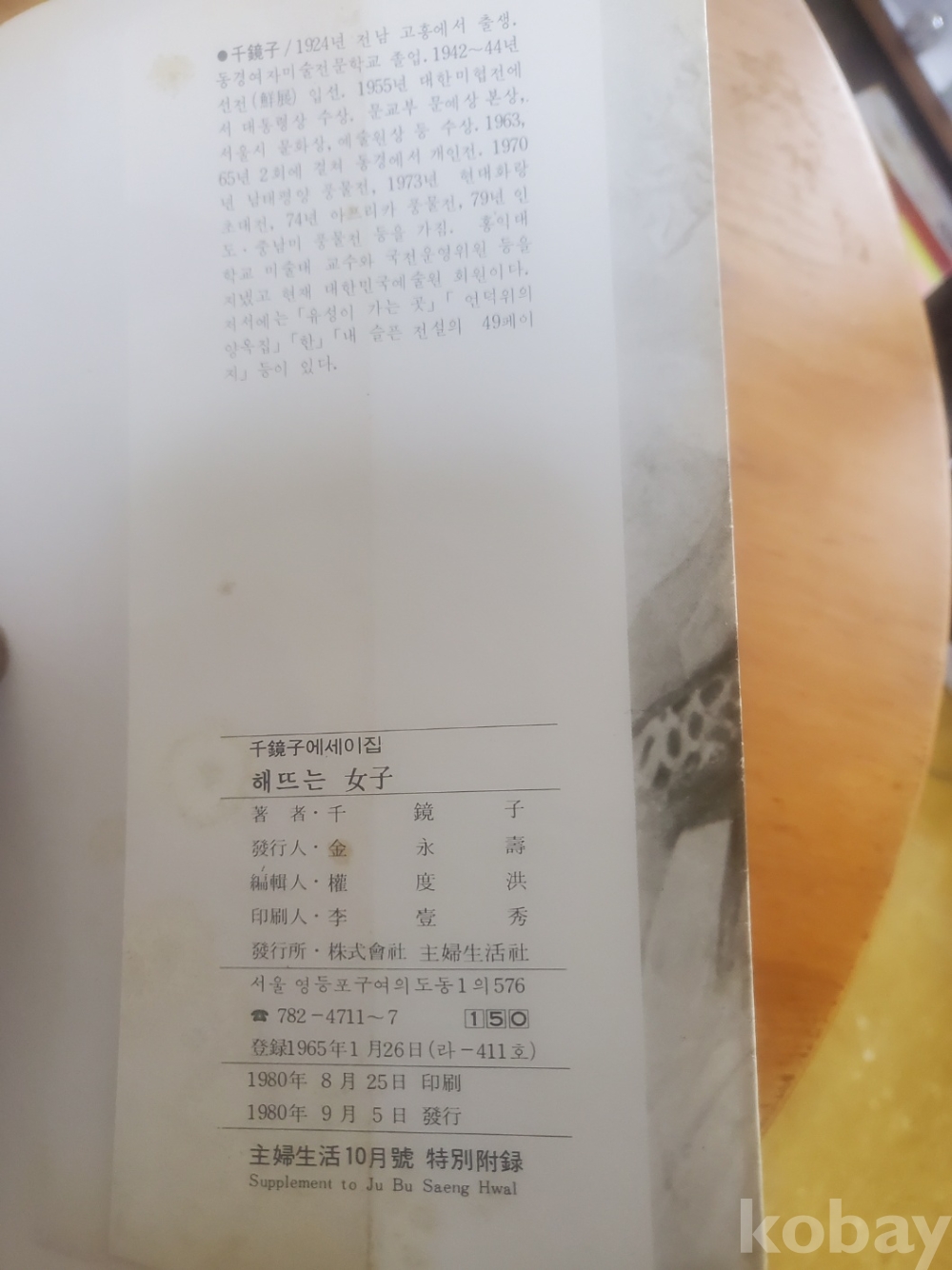 1. 해뜨는 여자, 천경자, 주부생활사, 1980년, 288쪽, 상태 상, 사진 참조