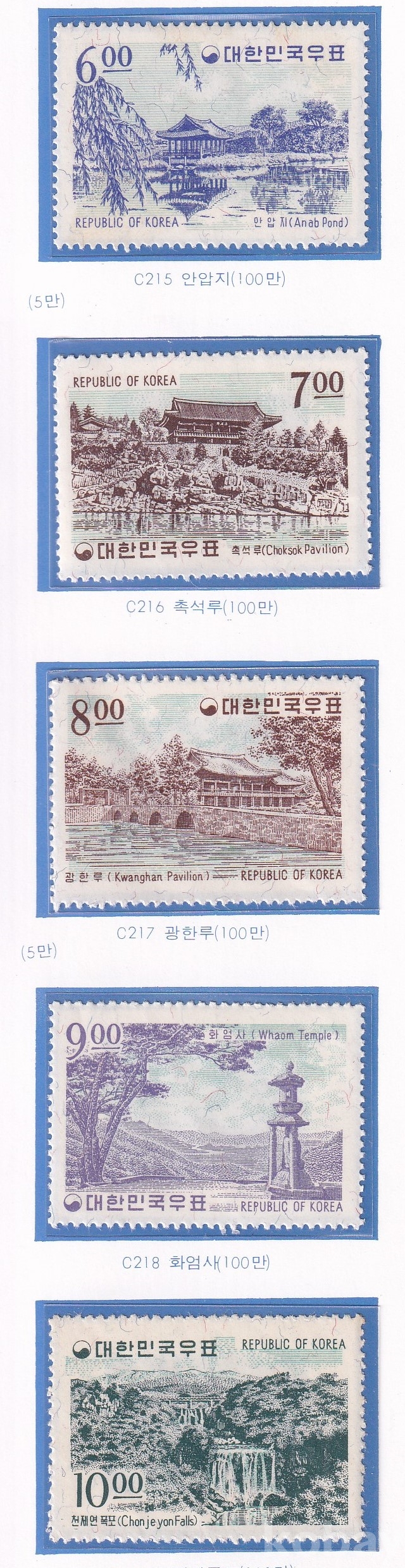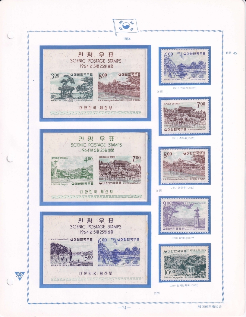 - 한국우표앨범 모음展 - 1964년 한국관광 시리이즈 우표 5종