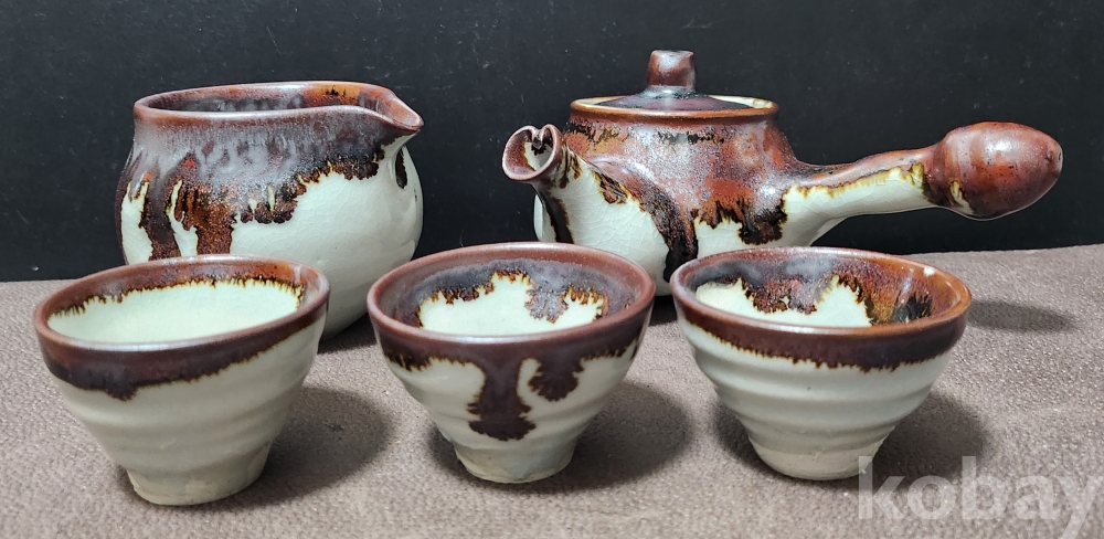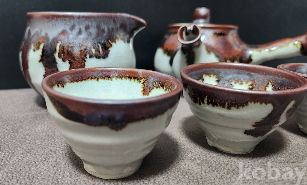 백자철화결정유다기 白磁 鐵畵晶釉釉茶器 < 미사용 박스 완비 작품 > (도예가 수결 作)