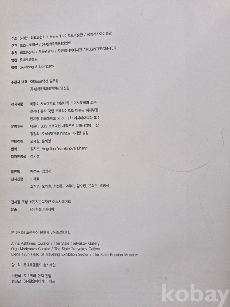 주최 (사) 한·러교류협회/국립트레티야코프미술관/국립러시아미술관,