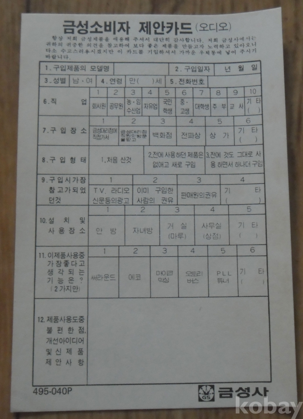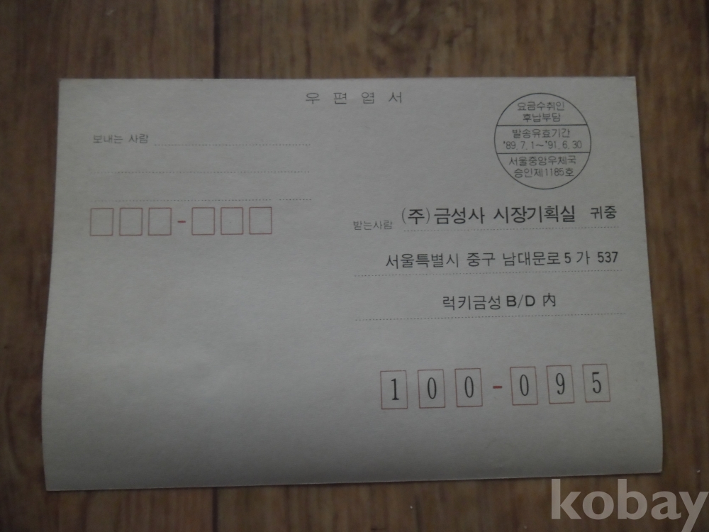 1989년 금성사 소비자 제안카드(우편엽서)