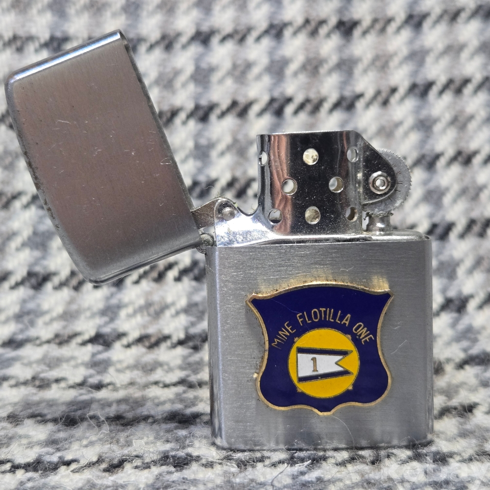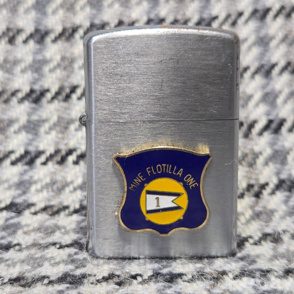 미 태평양함대소속의 미국 해군 기뢰전 전단 1(Mine Flotilla ONE)의 패치, 뒷면엔 사령관의 성명이 영문 필기체로 COMMANDER MINE FLOTILLA ONE 위에 각인되어 있습니다.