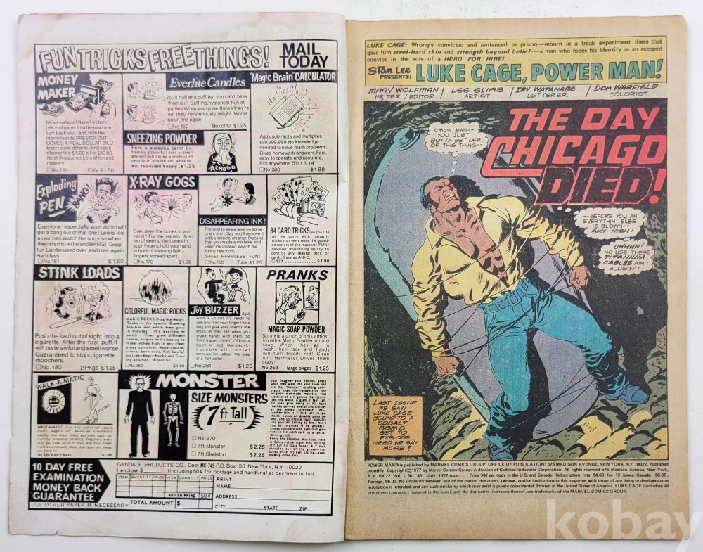 물 품 명 | LUKECAGE, POWER MAN / Vol.1 #45 July 1977 / MARVEL COMICS GROUP / 미국 |