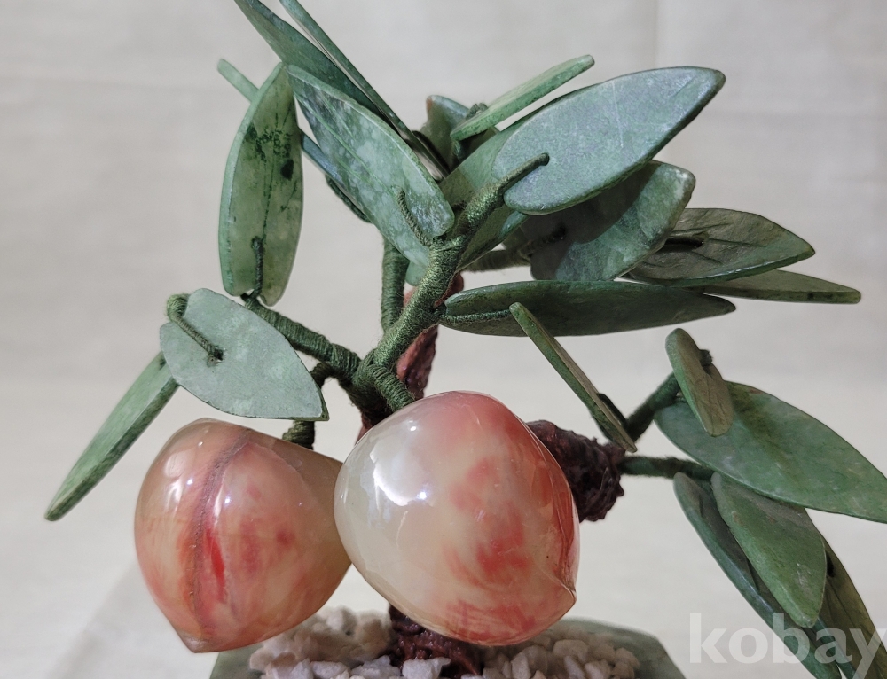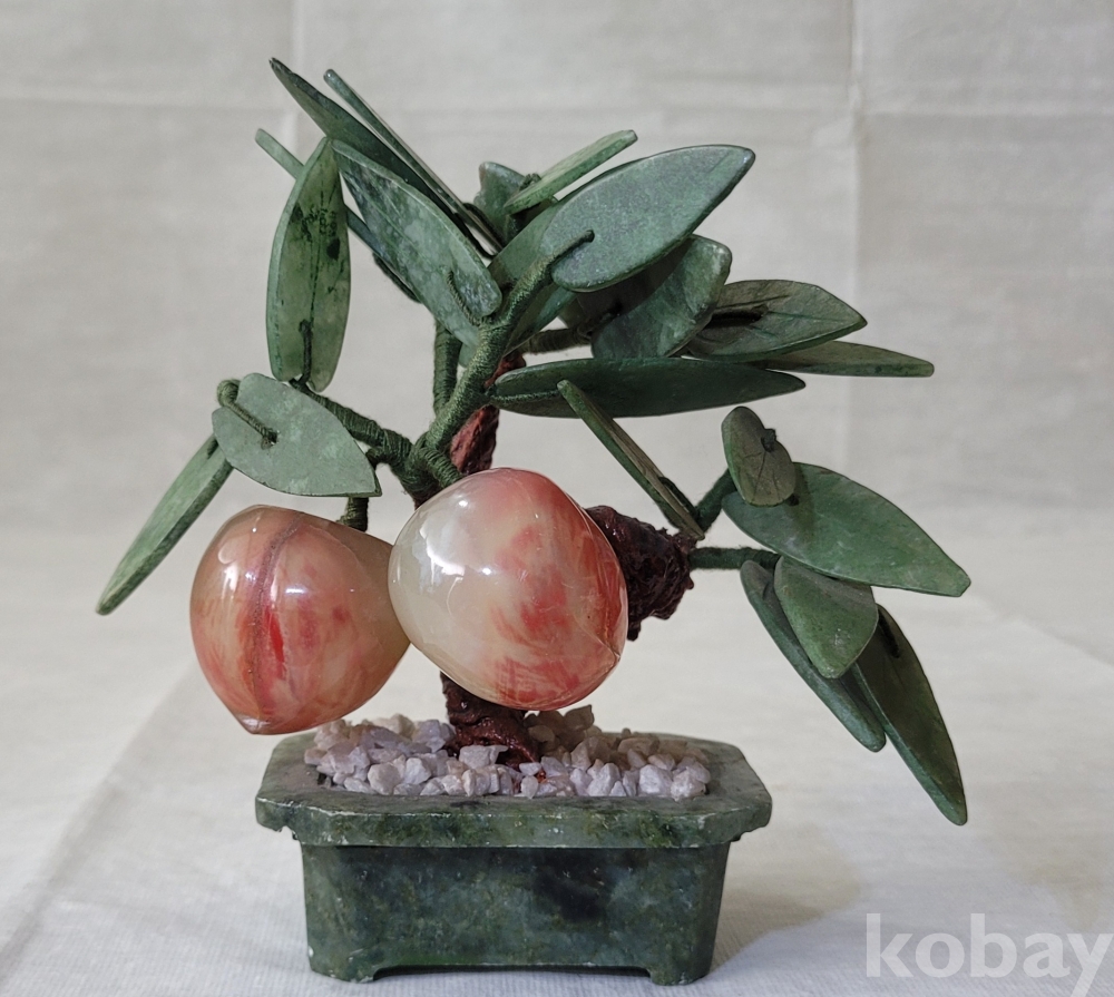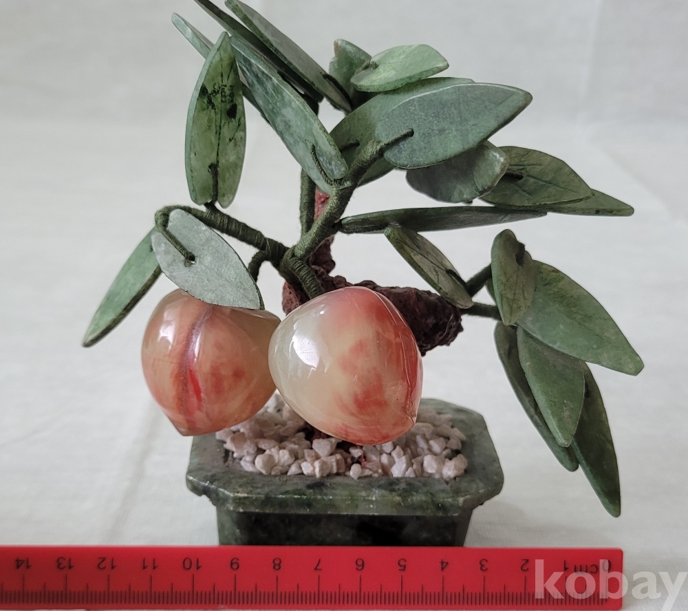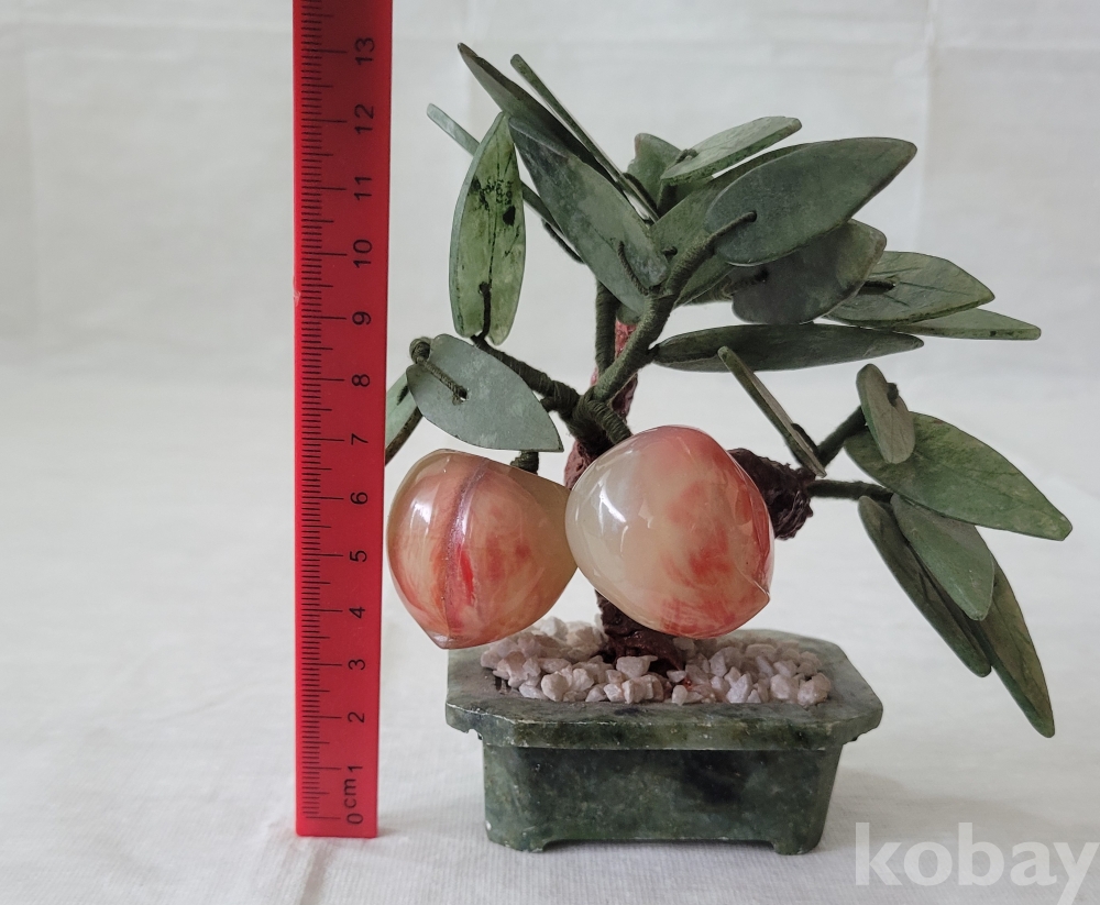 옥과옥돌로 만들어진 복숭아화분재 조각입니다. 크기와함께 사진참고해주세요.