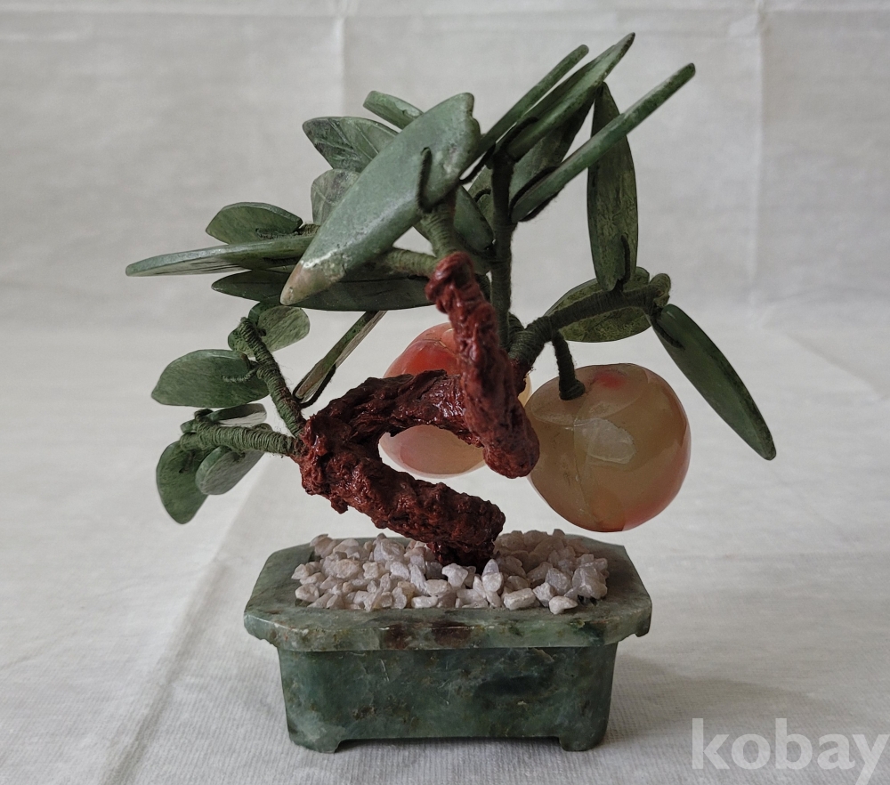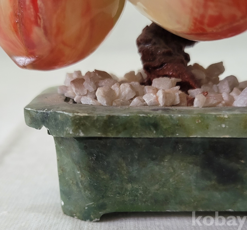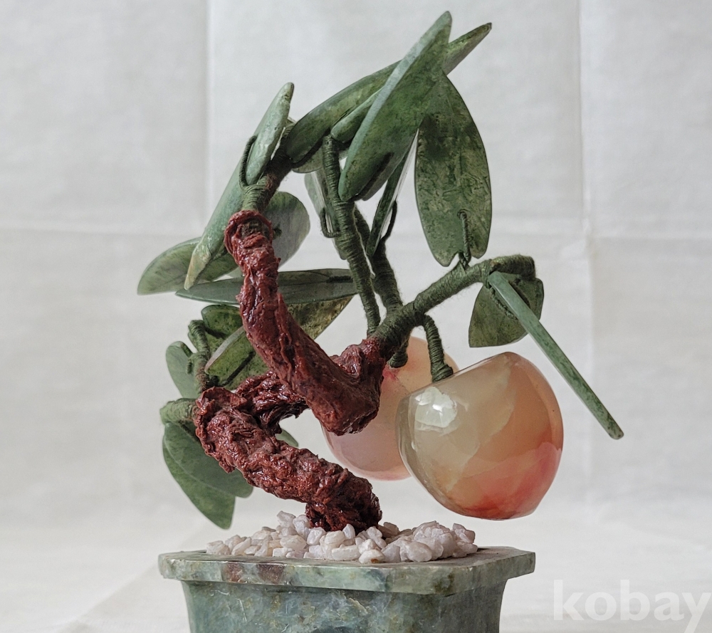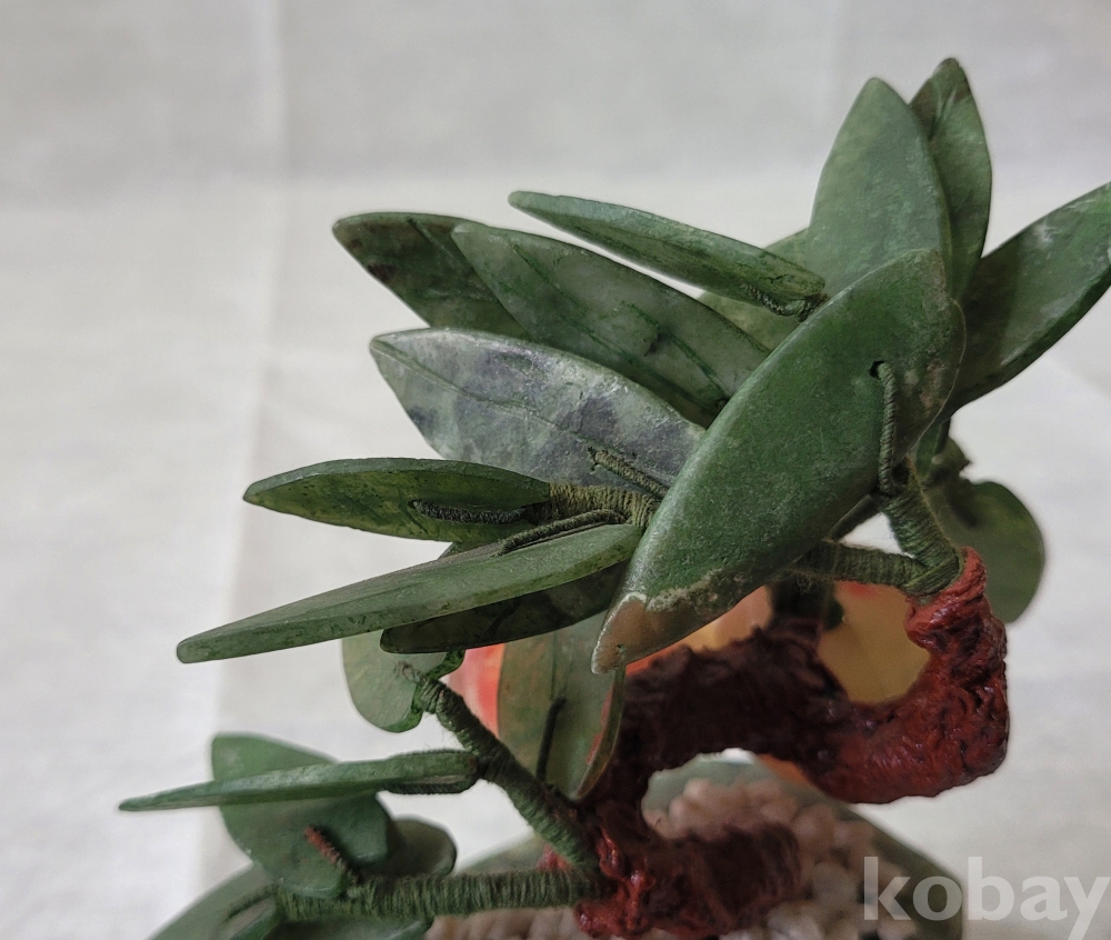 옥과옥돌로 만들어진 복숭아화분재 조각입니다. 크기와함께 사진참고해주세요.