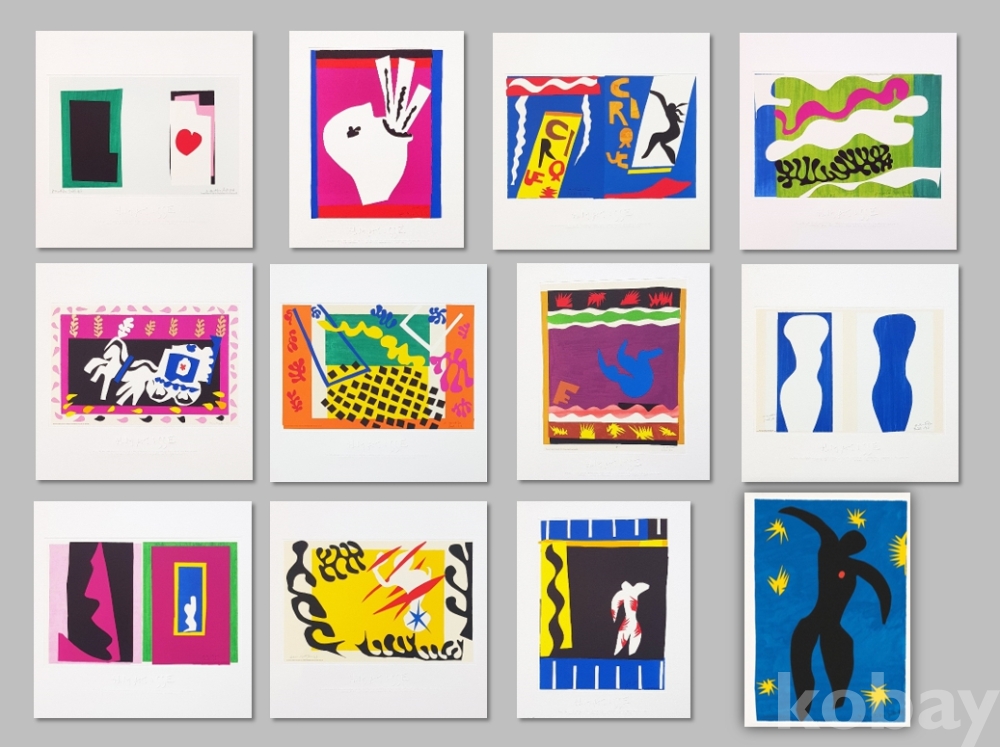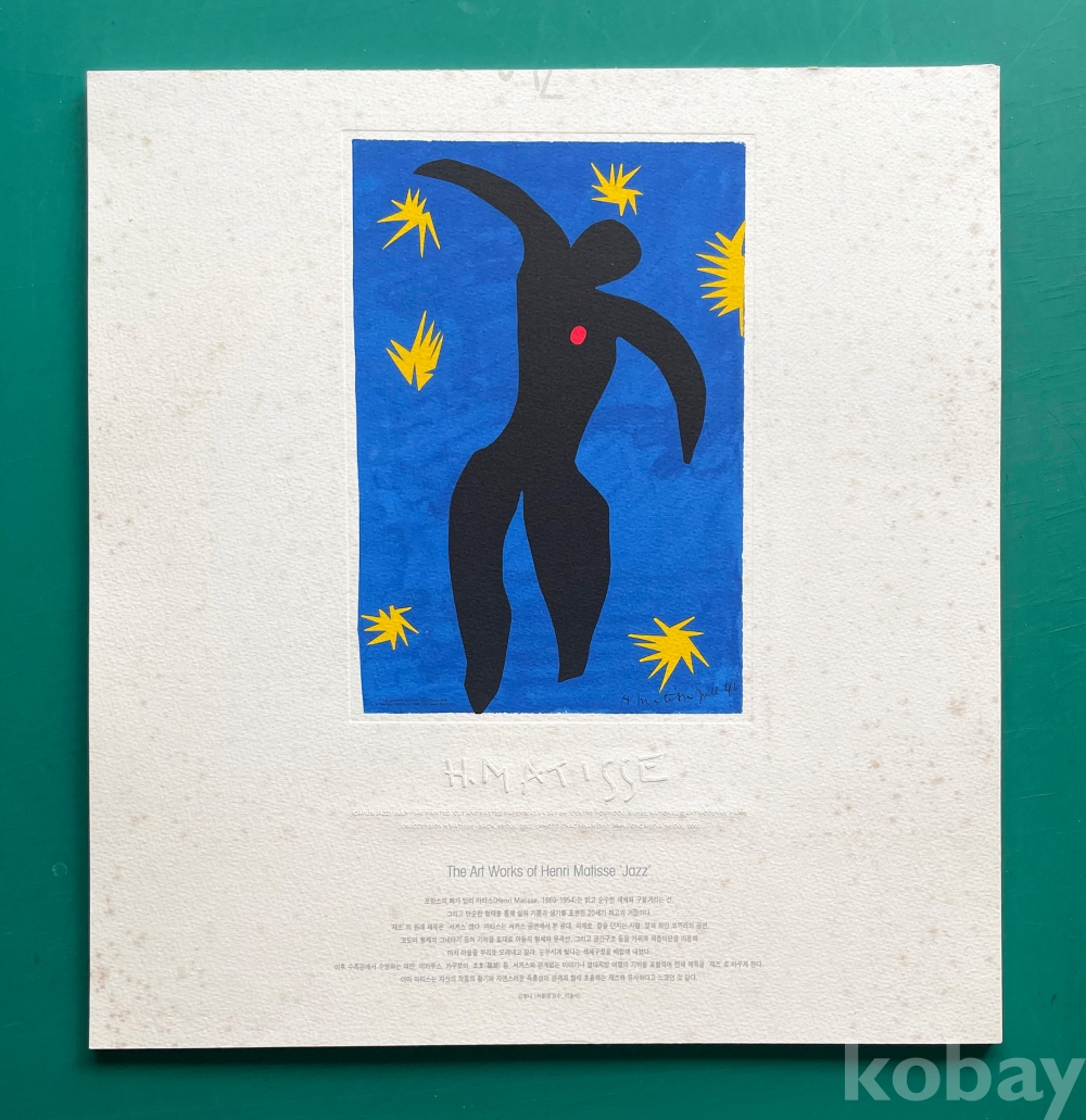 프랑스의 화가 앙리 마티스(1869~1954)는 밝고 순수한 색채와 구불거리는 선,그리고 단순한 형태를 통해 삶의 기쁨과 생기를 표현한 20세기 최고의 거장이다. ‘재즈’의원래 제목은 ‘서커스’였다.마티스는 서커스의 공연에서 본 광대, 피에로, 칼을 던지는 사람, 말과 하얀 코끼리의 공연, 코도마 형제의 그네타기 등의 기억을 토대로 이들의 형체와 윤곽선, 그리고 공간 구조 등을 가위와 색종이만을 이용해 마치 마술을 부리듯 오려내고 잘라, 눈부시게 빛나는 색체 구성을 배합해 내었다.이후 수족관에서 수영하는 여인,이카루스,카우보이,초호 등 서커스와 관계없는 이야기나 열대지방 여행의 기억을 포함하여 전체 제목을 ‘재즈’로 바꾸게 된다,아마 마티스는 자신의 작품의 활기와 자연스러운 즉흥성이 관객과 함께 호흡하는 재즈와 유사하다고 느꼈던 것 같다.