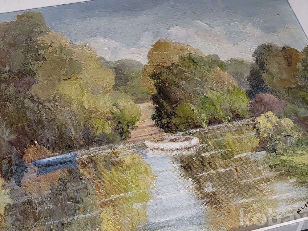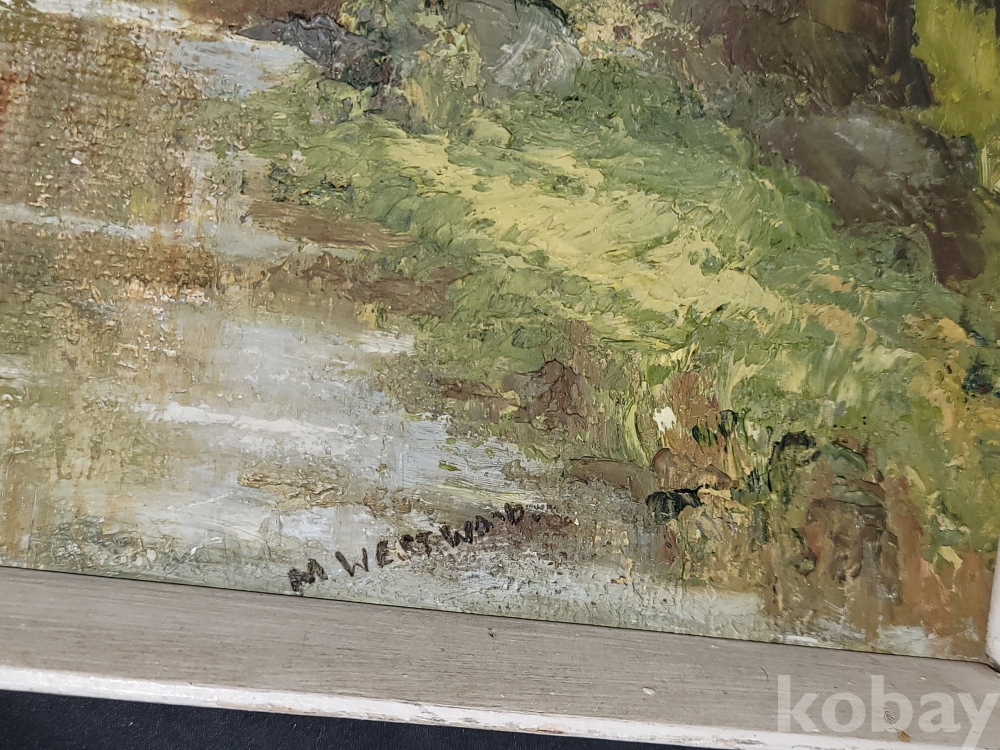 빈티지 세월 감이 느껴지는 희귀한 60년대 제작된 걸로 추정되는 외국 풍경 유화 그림 액자입니다.