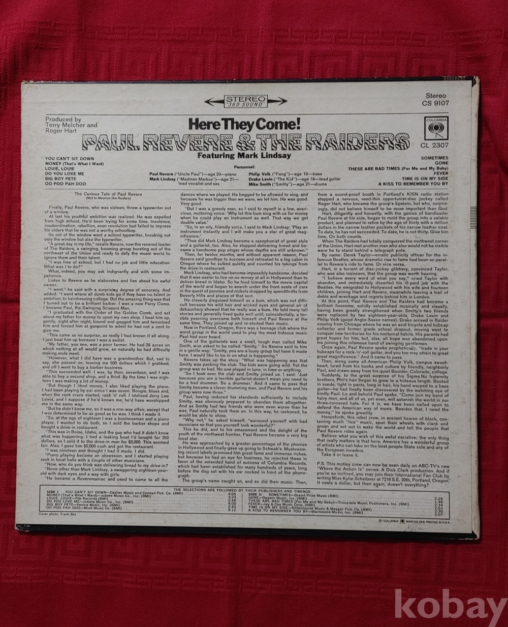 Paul Revere & The Raiders 앨범입니다 / 트랙은 별도로 제공하지 않습니다 / Nm+/ 미국