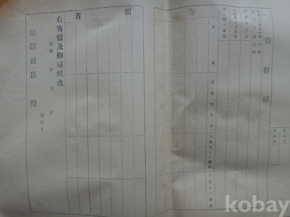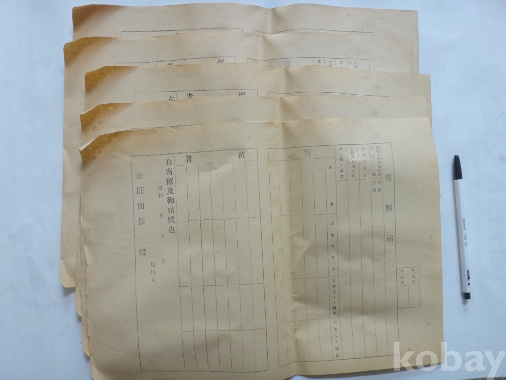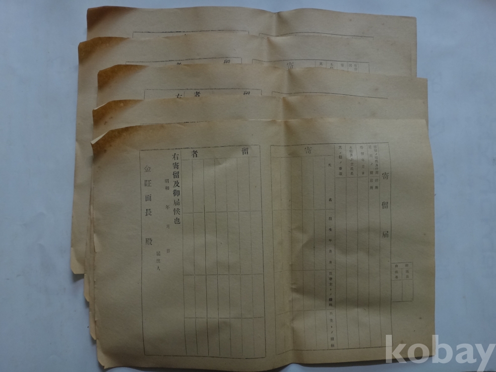 일제 강점기 - 금왕면장 기류계 (5매 일괄, 소화 연간)